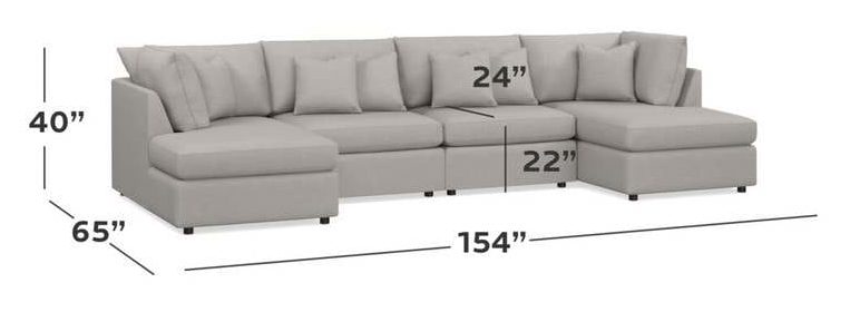 Product Description: Bassett Furniture 2676-CDSECT Beckham Double Chaise Sectional - Invite extended family. Friends, too. The all-welcoming Beckham Double Chaise Sectional is a modular sectional offering endless possibilities to be as large or small as needed. All pieces are top-stitched for durability, with weltless box seat cushions and loose knife edge back. Back and seat cushions are removable for easy cleaning. Wood legs are finished in walnut tone.