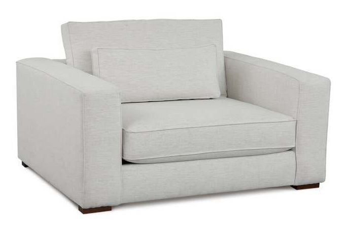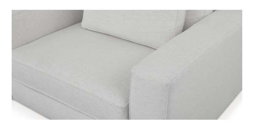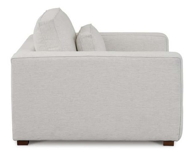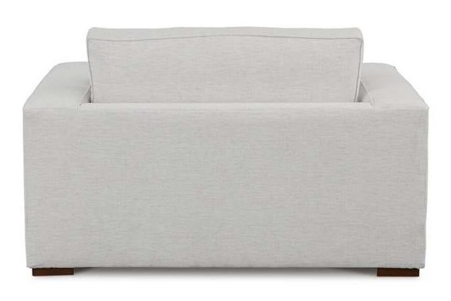 Product Description: Bassett Furniture 2728-18 Moby Chair and a Half - Snuggle room for two awaits in the generous Moby Chair and a Half. You'll enjoy the low-profile look that seems to float in your living room. Available in our best price fabrics, Alley Oyster and Stone. This extra-large chair and a half boasts deep seating and large rectangular, boxed back bolster pillows. The chair also features large, welted, full-front track arms as well as recessed wood block legs in a versatile walnut finish and removeable seat and back cushions.