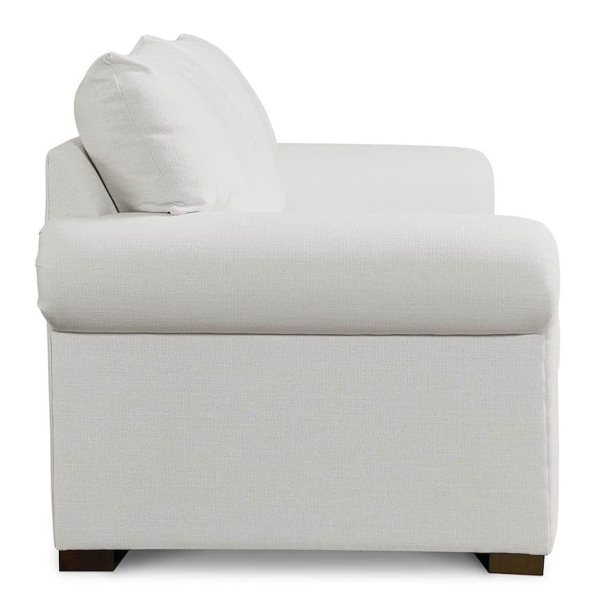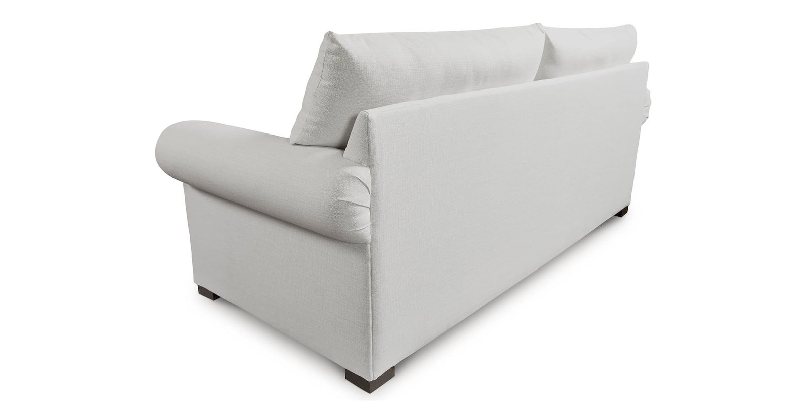 Product Description: Bassett Furniture 2762-62FC0 Hanover Roll Arm Sofa - Like a breath of fresh air, the easygoing 2/2 Hanover Sofa adds a touch of relaxed transitional style. Soft, attached bed pillow back cushions and top-stitched seat cushions create a look that's just as comfortable as it is inviting. Low-block legs with Brindle finish complement the fabric options. Choose from Cloud or Driftwood Revolution fabric.