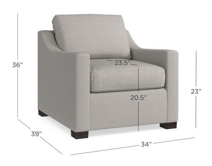 Product Description: Bassett Furniture 2787-12 Oliver Chair - Nothing says effortless cool like the Oliver Chair, with its low modern profile and wood block legs in brindle finish. The sloped arms make it a beauty from every angle. Loose boxed cushions with top-stitched seams create a streamlined look that is easily restored with a quick fluff of the cushion. Choose from hundreds of fabrics.
