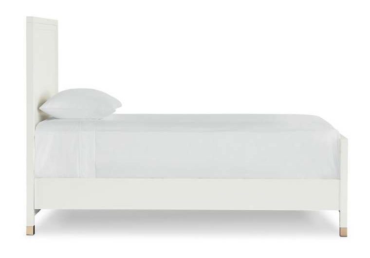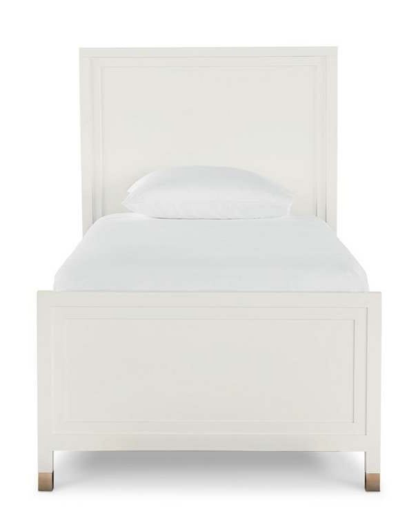 Product Description: Bassett Furniture 2977-K139 Tidewater Twin Panel Bed - The crisp, white sophistication of the Tidewater Twin Panel Bed will have you dreaming of waves and soft breezes. Make no mistake, this streamlined bed is just as comfortable in an elegant boudoir as it is in a coastal getaway. The raised framing details add dimension to the headboard and footboard. A smooth, opaque Hampton White finish has a modern edge that withstands the test of time. Metal ferrules in satin brass finish add a touch of class to the streamlined legs.
