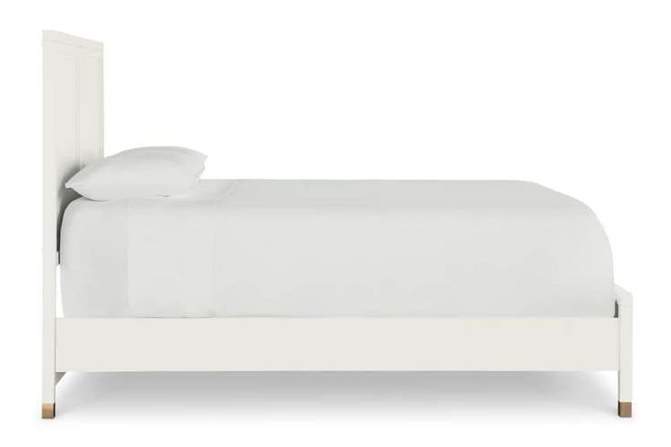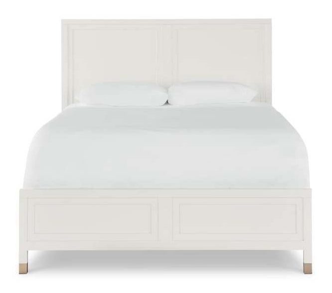 Product Description: Bassett Furniture 2977-K159 Tidewater Queen Panel Bed - The crisp, white sophistication of the Tidewater Queen Panel Bed will have you dreaming of waves and soft breezes. Make no mistake, this streamlined bed is just as comfortable in an elegant boudoir as it is in a coastal getaway. The raised framing details add dimension to the headboard and footboard. A smooth, opaque Hampton White finish has a modern edge that withstands the test of time. Metal ferrules in satin brass finish add a touch of class to the streamlined legs.