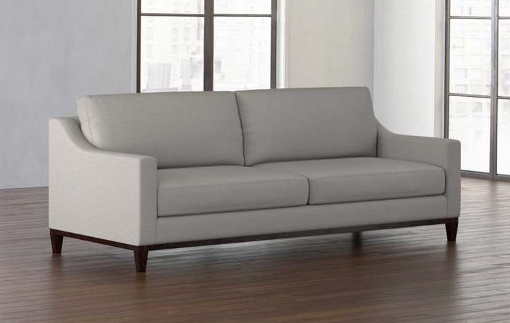 Product Description: Bassett Furniture 3135-62 Sanford Sofa - The grand scale and elegant sloping lines of the Sanford fabric sofa are the perfect match for a dramatic setting. Relax into a deep seat, accented by a low modern seat depth and high leg. Choose your perfect fabric color in store, as well as wood leg finish.