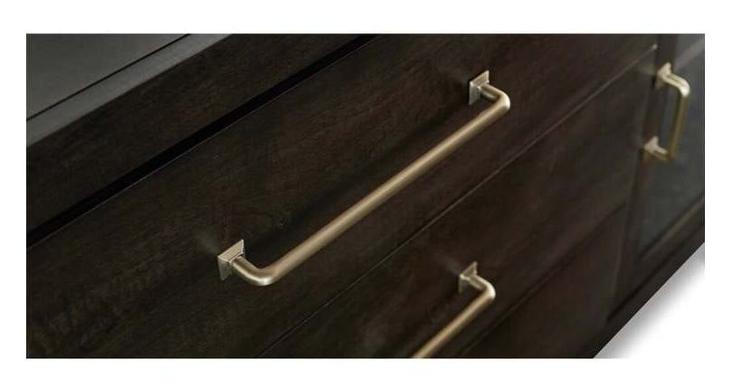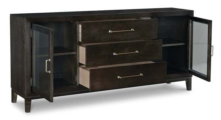 Product Description: Bassett Furniture 4021-0352 BenchMade Fairfax Maple Sideboard - This piece offers stylish, handcrafted storage ideal for dining spaces. It features glass-front cabinets with adjustable wood shelves to showcase treasured items, three soft-closing drawers for hidden storage, and brass bar pull hardware for a contemporary touch. Designed with thoughtful wire management and built by hand from solid maple, it provides both function and timeless appeal for entertaining and everyday use.
