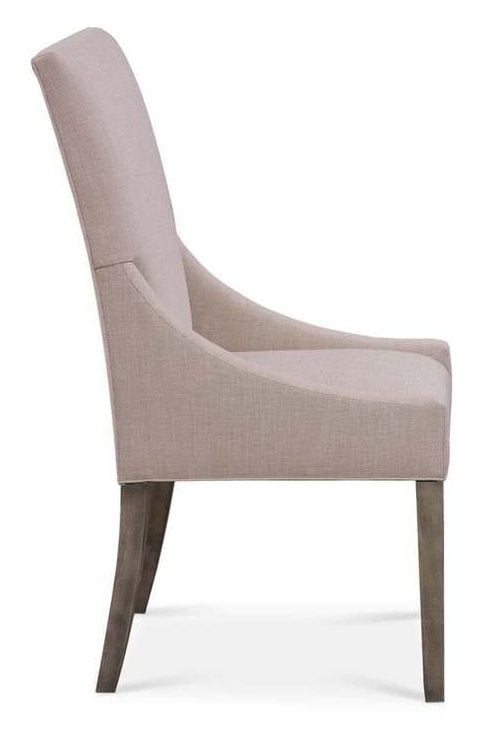 Product Description: Bassett Furniture 4021-0685S Benchmade Benchmade Dining Alice Maple Slope Arm Chair - Benchmade elevates the everyday by crafting the Alice dining chair with a sense of permanence. Designed to complement any of the Benchmade dining tables, this fully upholstered dining chair has gently sloping arms that extend to the front of the high crown seat with a wide, generous back. The Alice frame is also made by hand in solid maple, lightly distressed, and available in finishes ranging from greys and whites to deep browns. Sinuous wire seating support for premium comfort. In performance linen or velvet fabrics, in a range of beautiful colors and patterns, the Alice will hold its own in any dining area.