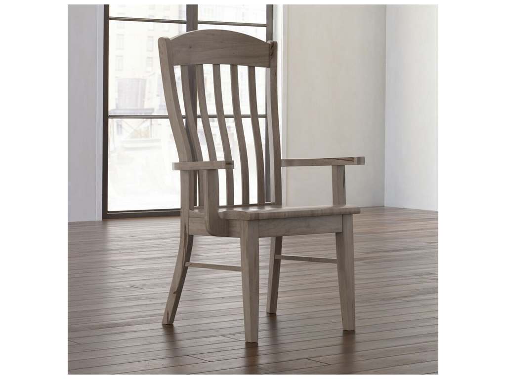 Product Description: Bassett Furniture 4021-1000HN Holden Maple Arm Chair - The Holden solid maple arm chair by Benchmade is a modern take on American Windsor with its repeating, narrow vertical slats, taller back and slightly larger scale. Crafted from sustainable solid Appalachian red leaf maple, Holden has clean-lined tapered legs.