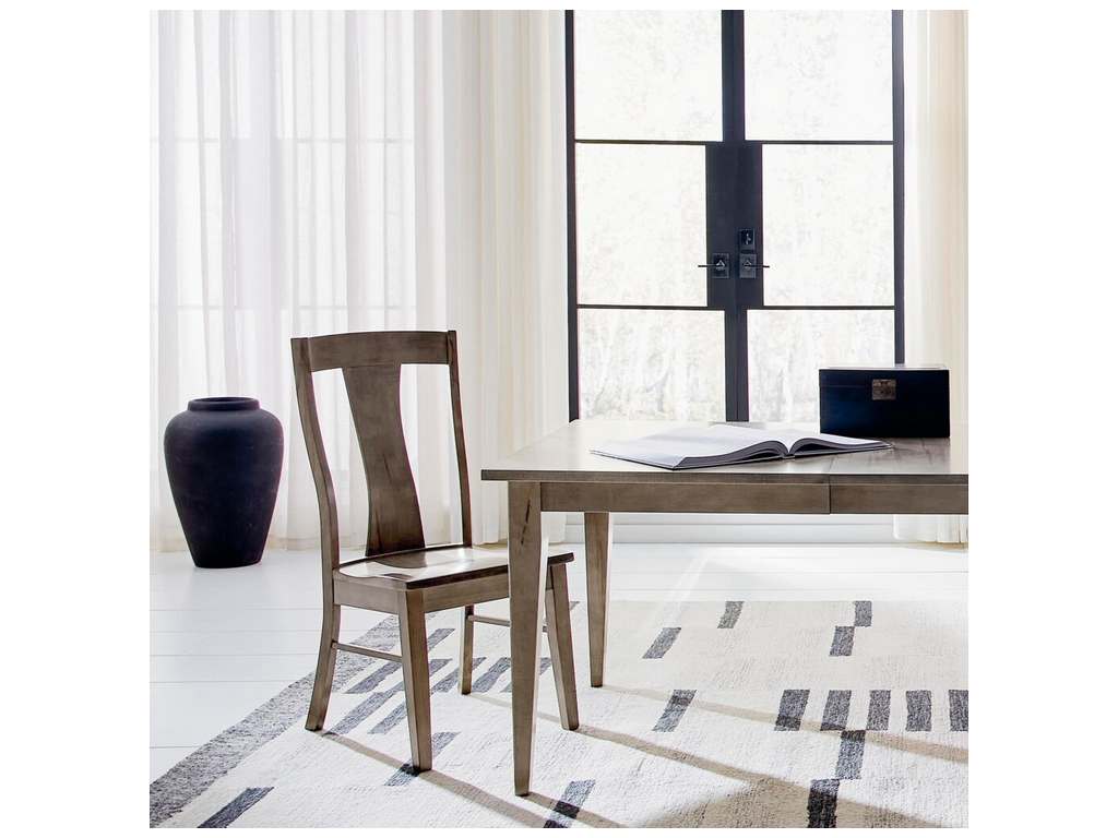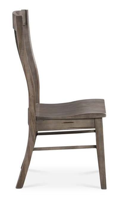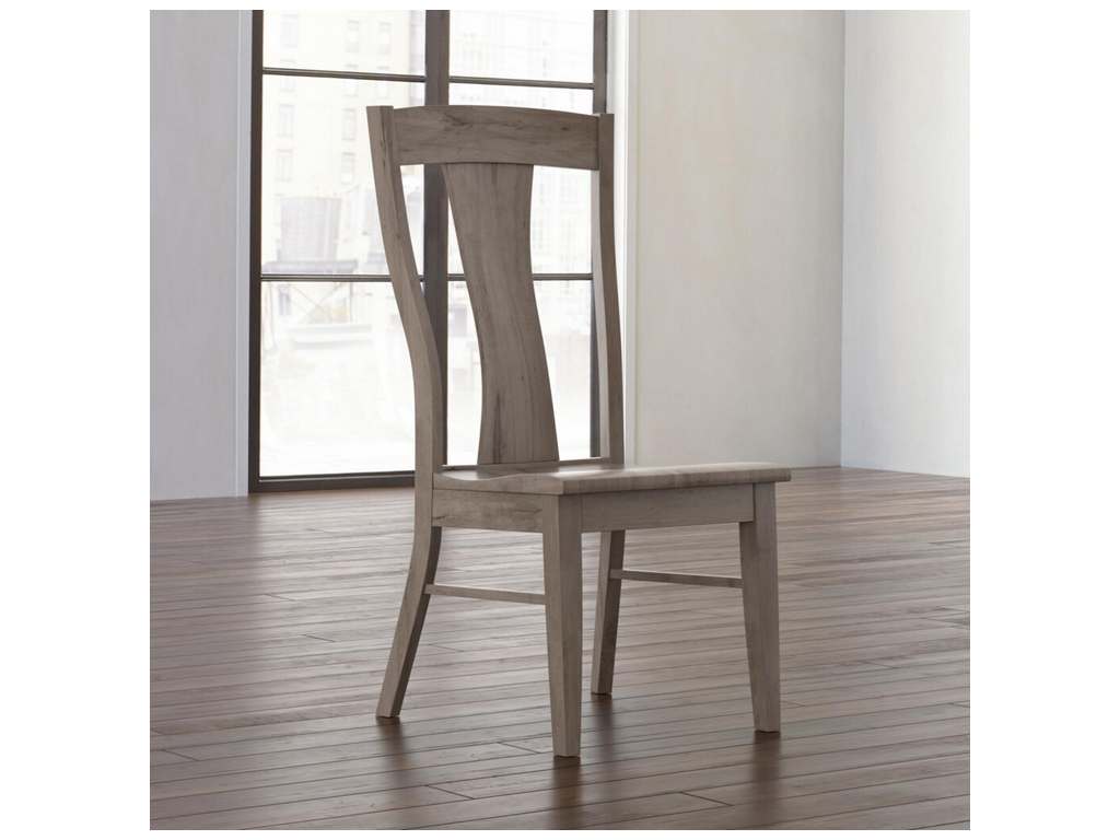 Product Description: Bassett Furniture 4021-2000BN Barnes Maple Side Chair - Like all Benchmade solid wood chairs, the Barnes maple side chair is made with heart by hand. Featuring a comfort curved seat to provide an ergonomically exceptional experience, Barnes has a center vertically shaped splat back and clean-lined tapered legs that complement transitional styling. The lightly distressed maple is available in finishes ranging from greys and whites to deep browns; and it can be two-toned, with the frame and seat in different finishes.