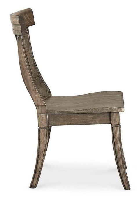 Product Description: Bassett Furniture 4121-2000BX Baxter Oak Side Chair - Both modern and timeless, the Baxter oak side chair helps you express your personal style. From Benchmade, the solid wood side chair is reminiscent of the Klismos chair, as seen on ancient Greek pottery and architectural ornament, and reinterpreted throughout history in neoclassical designs. Baxter's wide concave backrest, gently splayed legs, and comfort curved seat provides an ergonomically exceptional experience. Beautifully rendered in lightly distressed solid white oak in a choice of finishes ranging from greys and whites to deep browns; it can also be two-toned, with the frame and seat in different finishes.