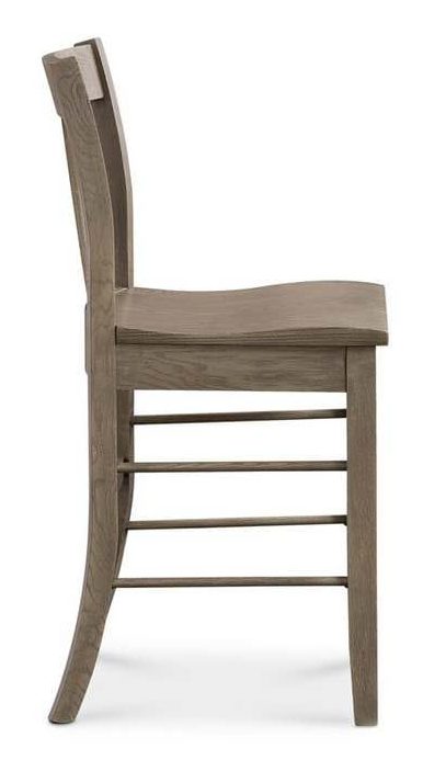 Product Description: Bassett Furniture 4121-3000BN Barnes Oak Counter Stool - Like all Benchmade solid wood chairs, the Barnes white oak counter stool is made with heart by hand. Featuring a comfort curved seat to provide an ergonomically exceptional experience, Barnes has a center vertically shaped splat back and clean-lined tapered legs that complement transitional styling. The lightly distressed oak is available in finishes ranging from greys and whites to deep browns; and it can be two-toned, with the frame and seat in different finishes.