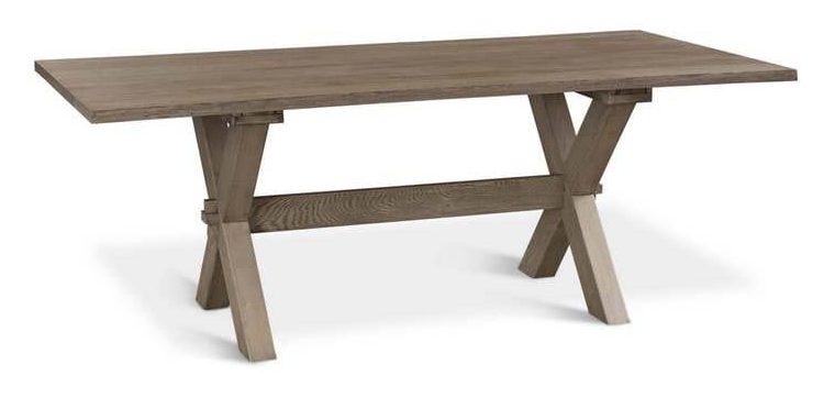 Product Description: Bassett Furniture 4121-7242XLE Crossbuck Oak Live Edge Dining Table - Few dining tables transition different decorating styles as straightforwardly as the Crossbuck table by Benchmade. A craftsman's touch gives it a live edge with its own unique shape, curvature, and variation while exposed mortise and tenon joinery recall the style and functionality of an 18th century tavern table. Each bespoke piece is artisan-crafted with heart in sustainable solid white Oak to draw out the beauty of the materials, available in finishes ranging from greys and whites to deep browns that are lightly distressed.