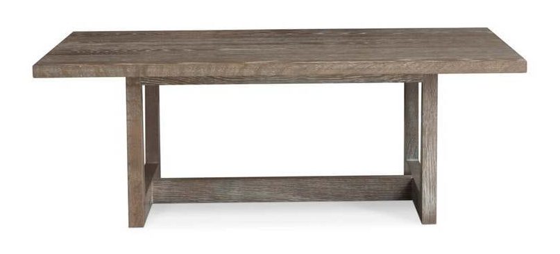 Product Description: Bassett Furniture 6121-0613 Liam Oak Rectangular Cocktail Table - The Liam Oak Rectangle Cocktail Table sets the tone for casual living with its clean lines and dramatic presence. Hand crafted by Benchmade artisans, the genuine American hardwood table rests on an angular trestle base. With its dimensionally finished thick surface, the Liam table provides a balanced counterpoint to a cozy living room sectional. And it's a handy place to set a drink or a vase of flowers.