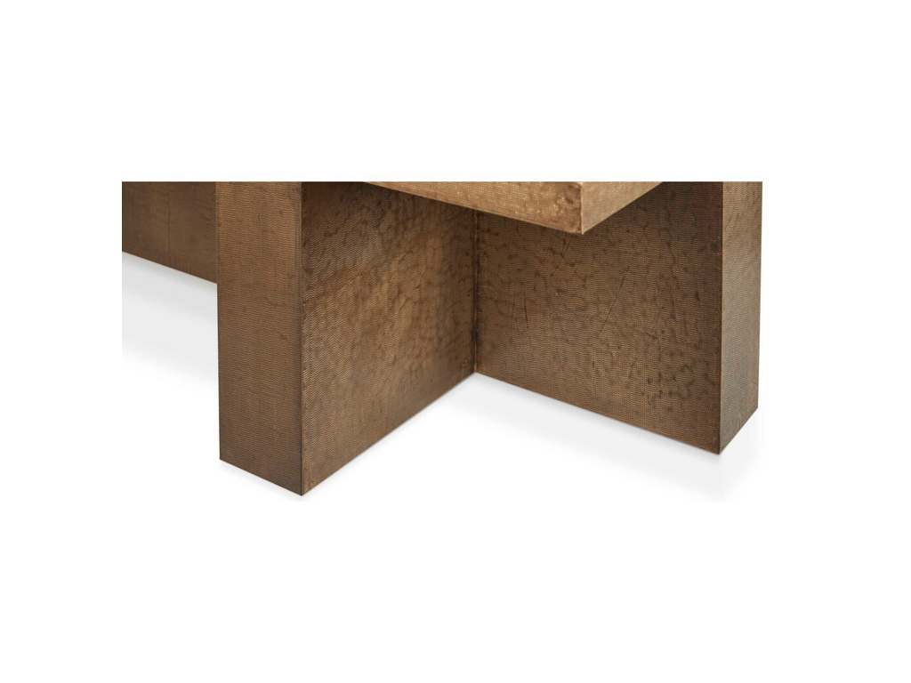 Product Description: Bassett Furniture 6206-0615 Vansant Square Cocktail Table - The Vansant cocktail table with a sleek, structure-like design with a rough-hewn finish adds a modern classic style to any space. It features asymmetrical legs and classic shapes and is covered in copper and zinc alloy cladding, powder coated in a brass finish. The hammered texture is done by hand giving each table a unique appearance and one-of-a-kind character.