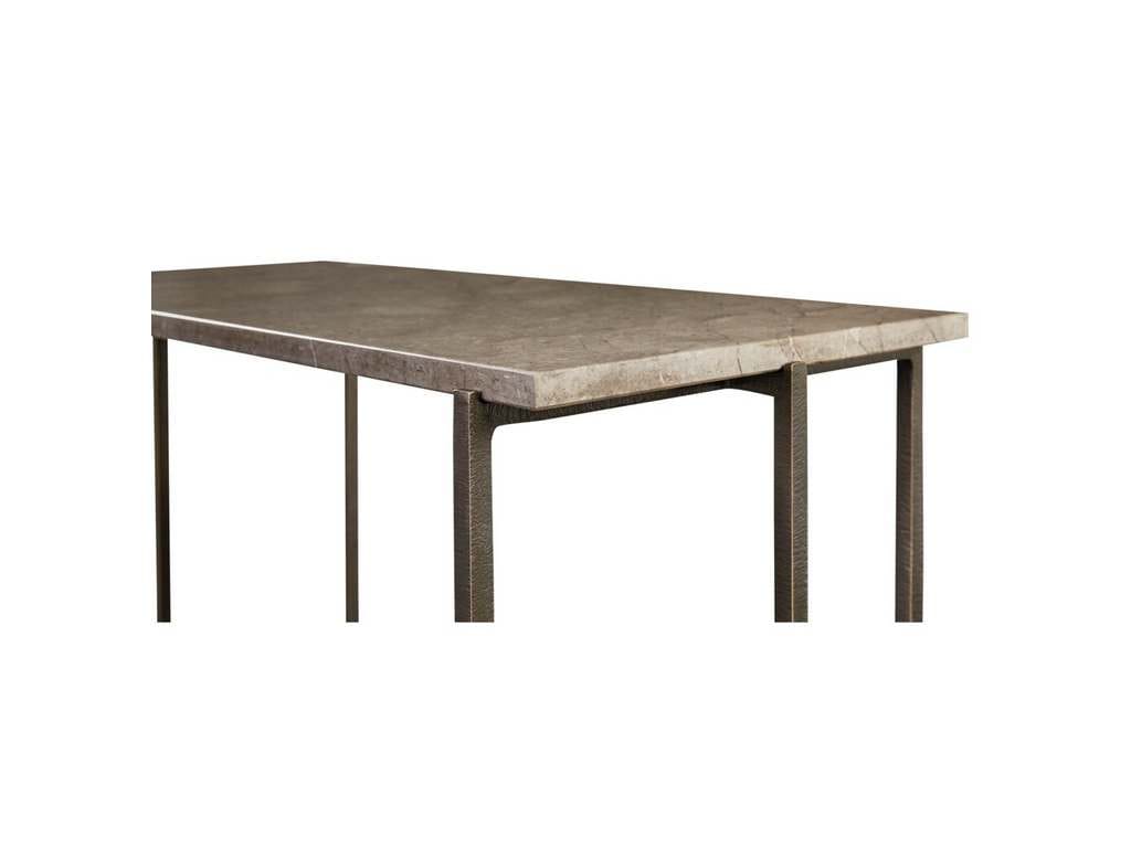Product Description: Bassett Furniture 6M45-K699 Exmore Console Table - Warm and sophisticated, the Exmore console table is a thing of lasting beauty. Though it sits to the side of an entry or behind a sofa, it's velvety smooth Greystone marble top makes a memorable impression with natural streaks of red, rust, and white. Angular details in the clean-lined welded metal base are finished with a hand-applied, textured bronze finish. The stone top is sealed for added protection, though coasters are recommended.