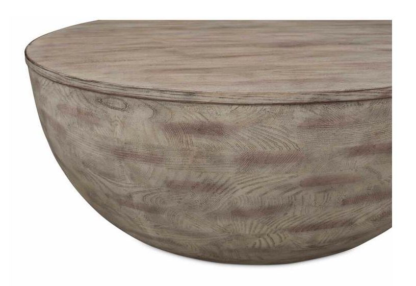 Product Description: Bassett Furniture 6W26-0605 Tahiti Drum Cocktail Table - For a more contemporary global vibe, we offer the Tahiti drum cocktail and round lamp tables. Tahiti takes on a sculptural quality, with simple spherical shapes and intriguing texture. Crafted of resin with a faux wood grain, both tables give a primitive vibe to relax a space.