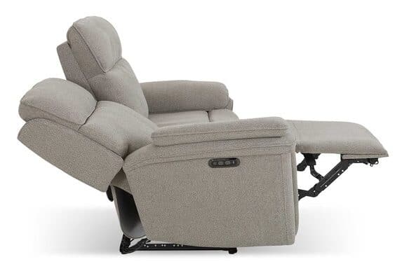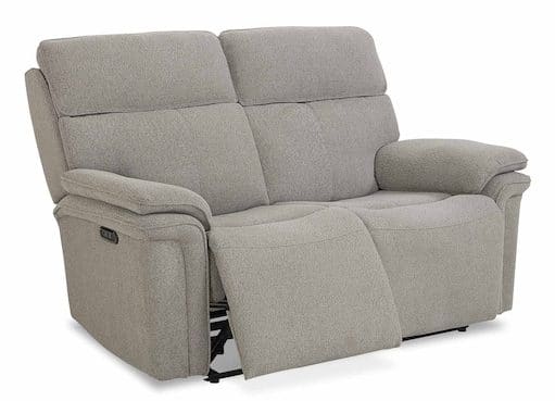Product Description: Bassett Club Level 3534-P42F Andre Power Reclining Loveseat with Center Console - Unwind in comfort with this Power Reclining Loveseat. Roomy plush recliners and double-padded arms offer generous support for two, while a space-saving wall-hugger design lets you relax without sacrificing room. Power-adjustable headrests, built-in USB ports, and soft chenille fabric options combine for lasting comfort and everyday style.