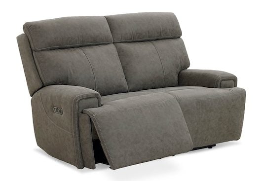 Product Description: Bassett Club Level 3535-P42S Nathan Power Reclining Loveseat - Nathan Shadow - This power reclining loveseat combines spacious comfort with a space-saving design. Each power wall-hugger recliner fully extends without moving the loveseat from the wall, while adjustable headrests provide personalized support. Hand-tailored in durable, velvety microfiber and featuring built-in USB ports, Nathan offers modern style and effortless everyday comfort.