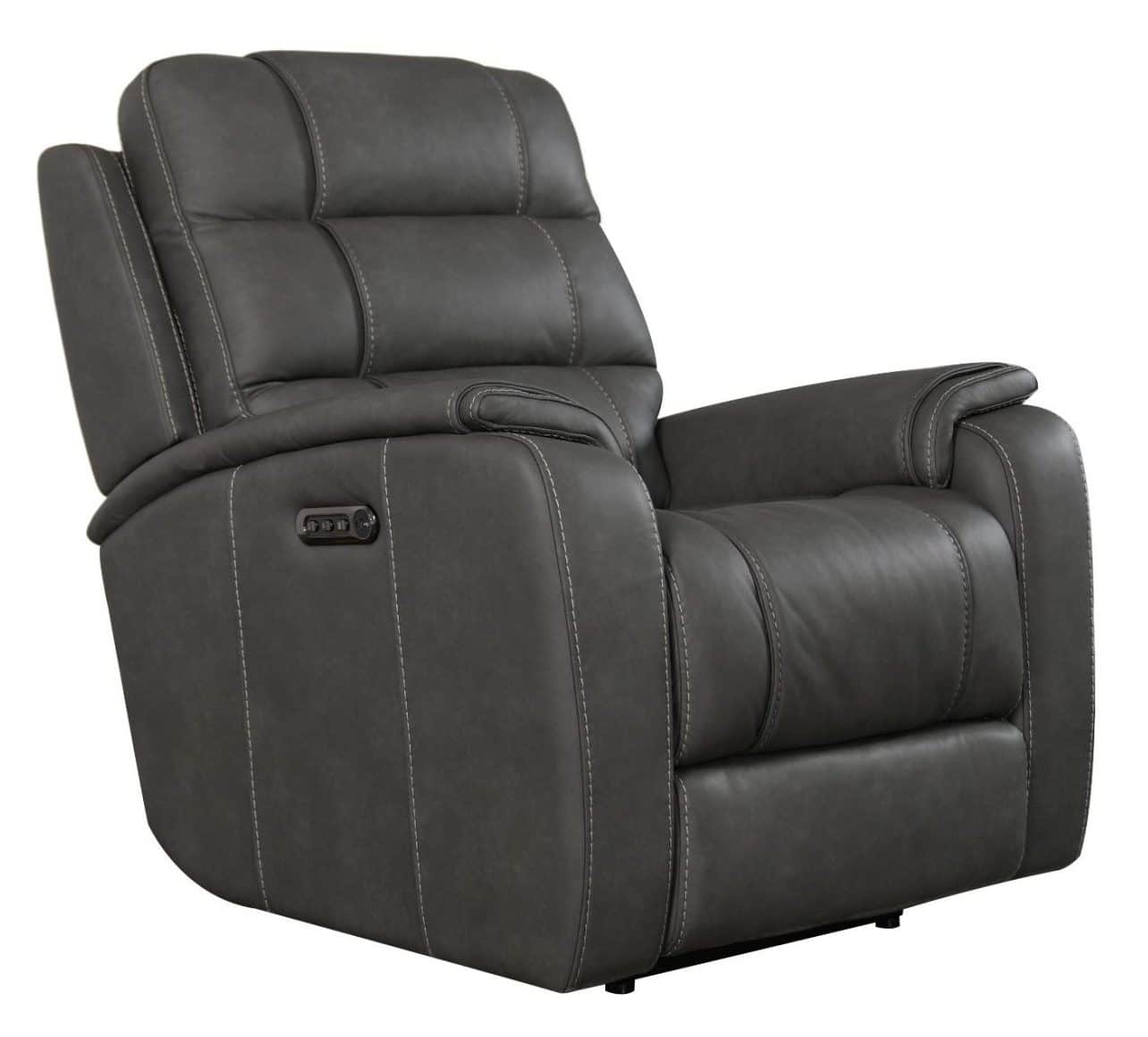 Product Description: Bassett Club Level 3732-P0G Wendell Wallsaver Power Power Recliner Gunmetal Leather - Wendell features generous scale and comfort with tailored padding on the back and seat, soft padded arms with detailed stitching. The top grain leather (with vinyl match) comes in two colors - Dust and Gunmetal. Wendell features a power "zero-gravity" mechanism for the ultimate in comfort with a power adjustable headrest and power adjustable lumbar support.With USB charging ports built into the controls, Wendell keeps you powered up and relieves your stress with unmatched comfort.