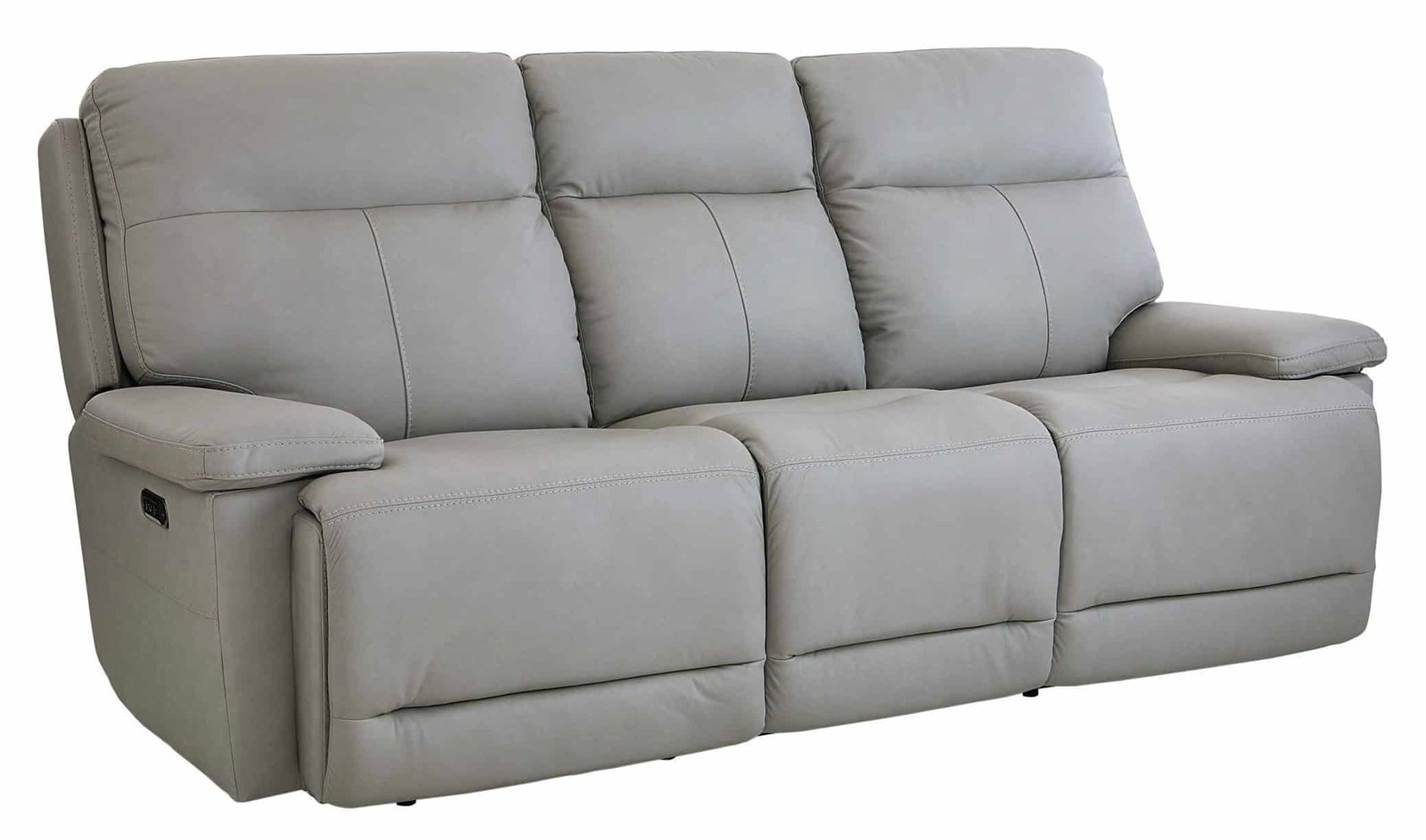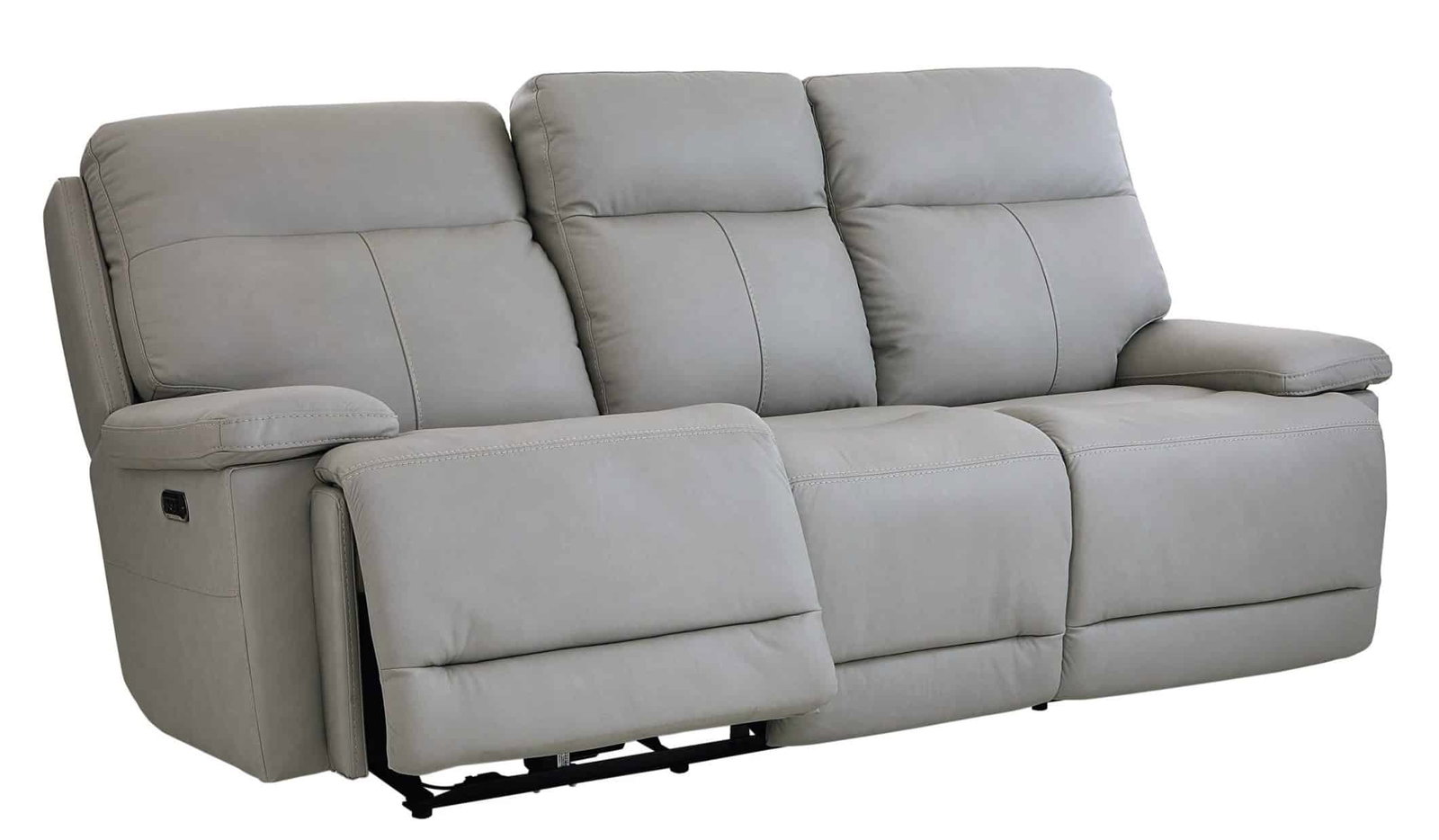 Product Description: Bassett Club Level 3733-P62G Fletcher Power Motion Sofa Gray Leather - Fletcher features generous scale and comfort, tailored for a clean upscale look with soft padded arms. The top grain leather (with vinyl match) comes in two colors - Antelope and Gray. Fletcher features a power "zero-gravity" mechanism for the ultimate in comfort with a power adjustable headrest. With USB charging ports built into the controls, Fletcher keeps you powered up and relieves your stress with unmatched comfort