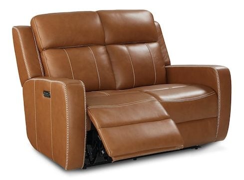 Product Description: Bassett Club Level 3752-P42T Norwood Leather Power Reclining Loveseat - Norwood Tan - This leather power reclining loveseat offers modern style and exceptional comfort. Dual zero-gravity recliners with adjustable headrests provide personalized relaxation for solo lounging or shared comfort. Built-in USB ports add convenience, while heavyweight top-grain leather ensures lasting luxury, making it perfect for living rooms, home theaters, or loft apartments.