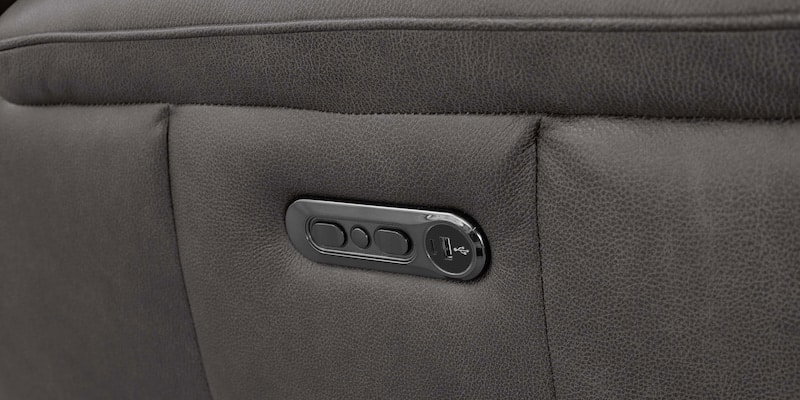 Product Description: Bassett Club Level 3762-P42TG Benson Leather Power Reclining Loveseat - Benson Tuscan Gunmetal - Relax in this leather power reclining loveseat, perfectly sized for two. Padded arms and headrests, top-grain leather in Tuscan Café or Tuscan Gunmetal, and channeled stitching offer plush, stylish comfort. One-touch zero-gravity reclining, a built-in USB port, and a space-saving wall-hugger design make it both practical and indulgent.