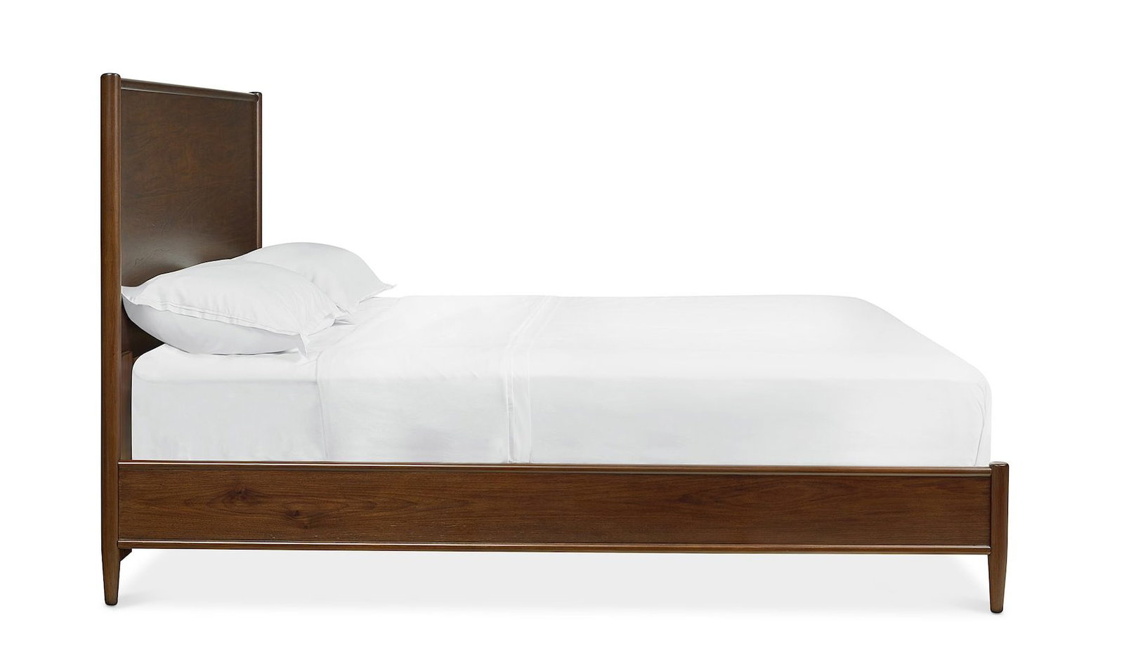 Product Description: Bassett Furniture 2535-K169 Copenhagen King Panel Bed - The Copenhagen Panel Bed uses the rich character of American walnut veneer and the simple elegance of straight-lined design to bring tranquility to your bedroom. Inspired by the best details of classic mid-century modern and Scandinavian furnishings, the Copenhagen Bed quietly evokes serenity as the platform for your sleep sanctuary. The inset panel, framed by rounded trim detail, allows the espresso-finished walnut to preen its subtle sheen. This is definitely design where less is unabashedly more, and proud of it. The Copenhagen bed is available in Queen, King, and California King sizes, with a headboard-only option also available.