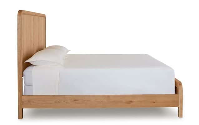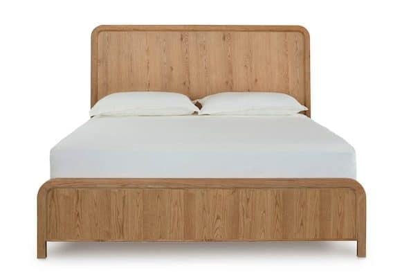 Product Description: Bassett Furniture 2544-K159 Newbury King Panel Bed - Soft rounded corners on the paneled white oak headboard and footboard enhance the sleekly architectural appeal of our Newbury Panel Bed. A tracing groove around the outer frame adds dimension to the textured oak, while the clean line of the bed rails anchors the overall look in a straightforward statement of modern style. Available in either of the two Newbury signature finishes, complete bed or headboard-only options can be ordered in Queen, King, and California King sizes.