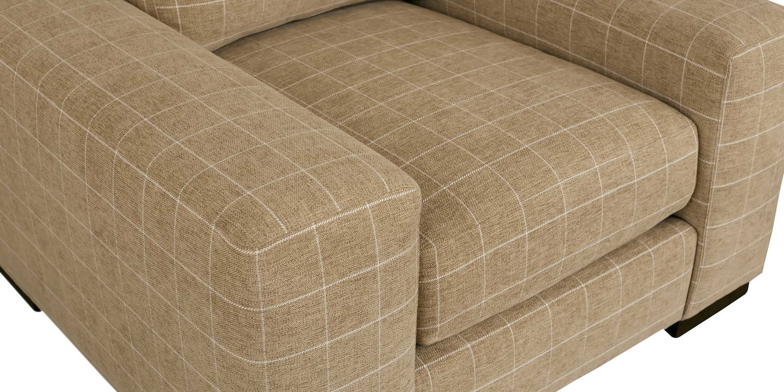 Product Description: Bassett Furniture 2615-12 Southpark Chair - With a wide-armed embrace of modern styling and deep-seated comfort, the Southpark Chair can anchor your most relaxing moments. While singular in design, it’s also easy to imagine the Southpark in pairs, adding the ultimate design statement to your gathering space. You can choose the level of comfort for your seat cushions, and then select a designer fabric that completes your customization. The Southpark’s thick seat and back cushions are loose, allowing for rotation and even wear on a chair destined to be everyone’s favorite seat. The wide, track-armed chair sits perched on 2” tall block legs in a brindle finish. It’s also available in leather (Southpark Leather Chair).