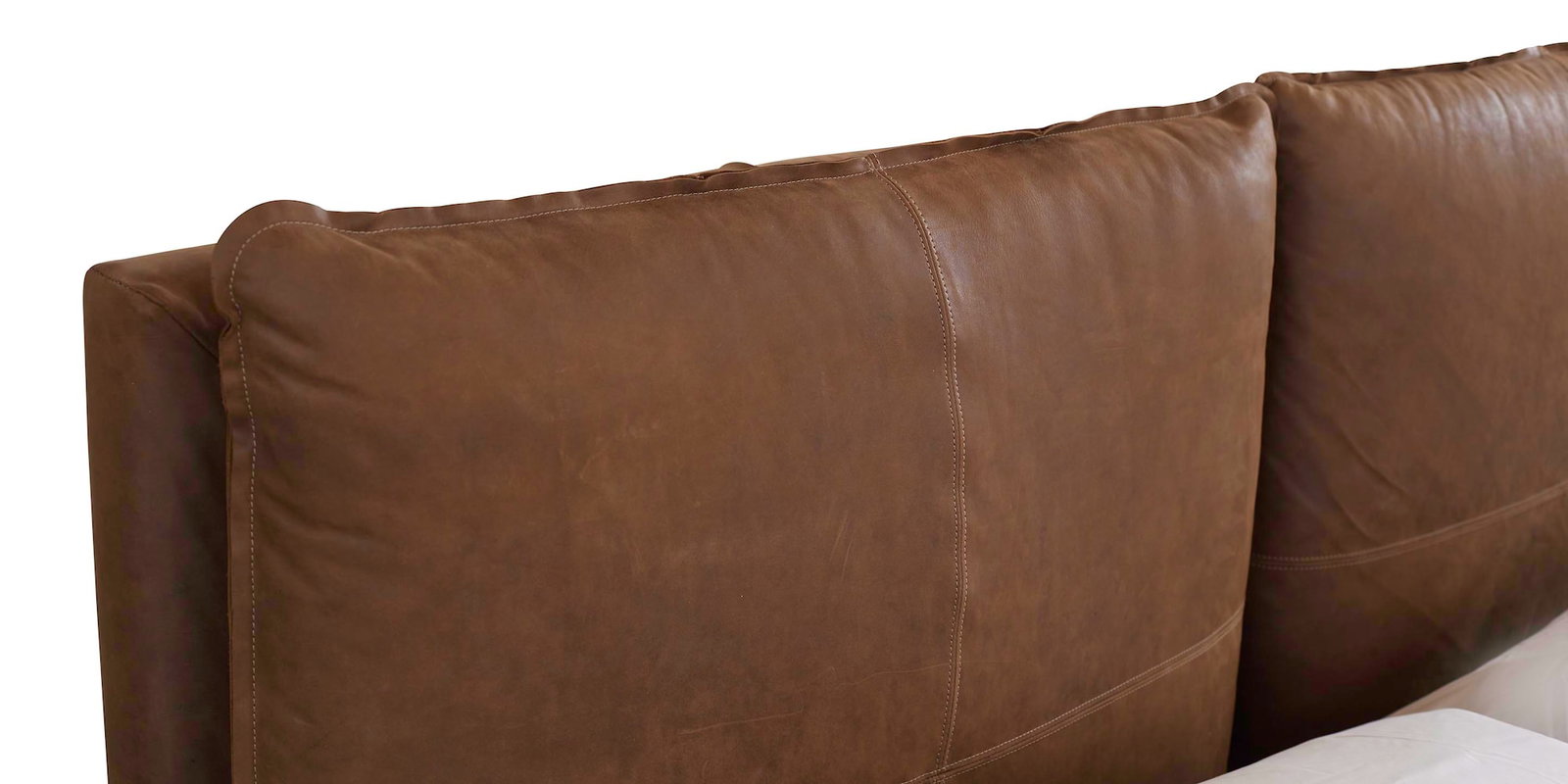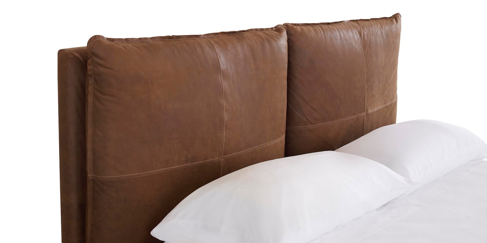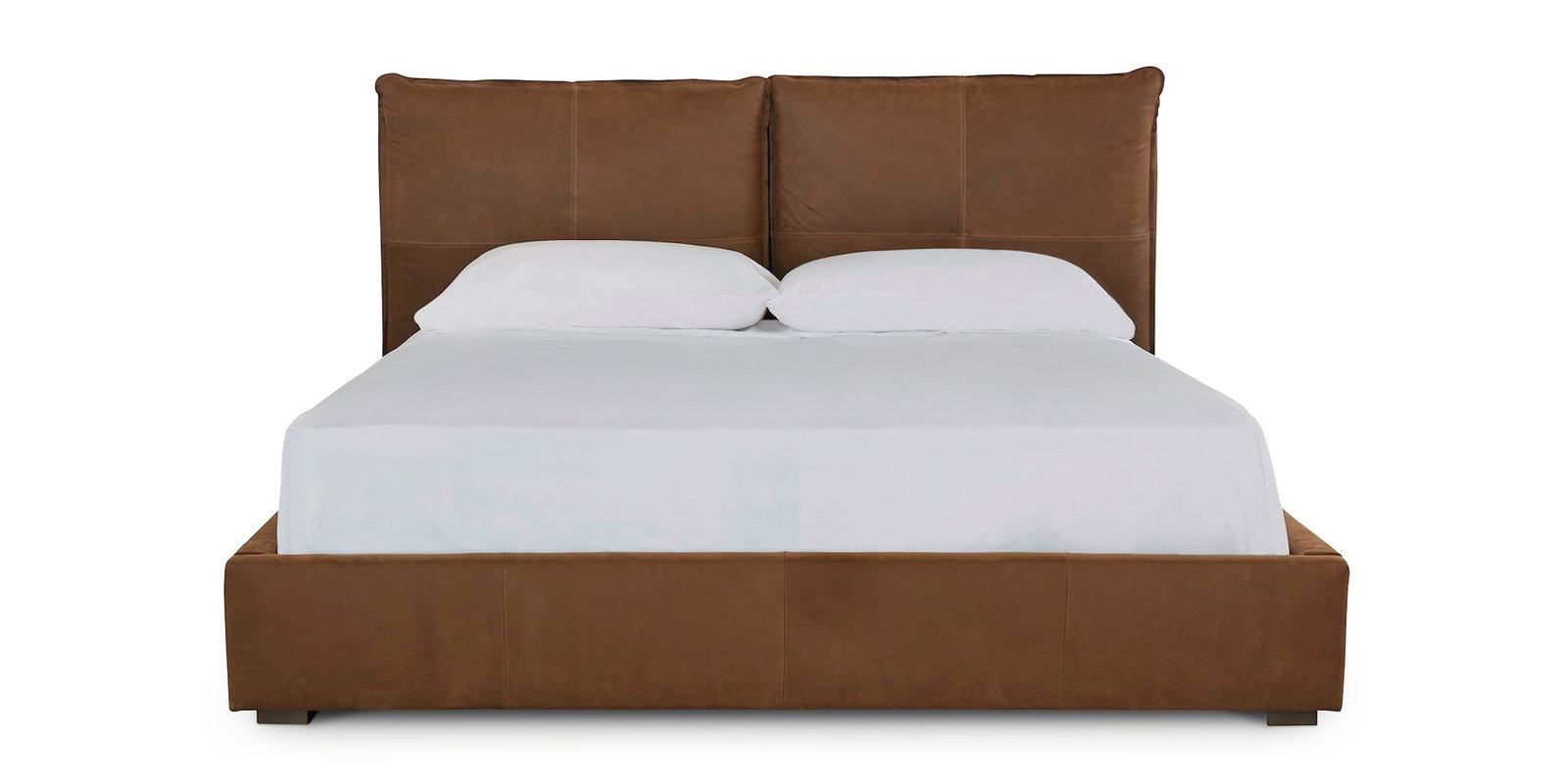 Product Description: Bassett Furniture 2830-KP69L-7232-8 Greer King Leather Upholstered Bed - Leather: Coffee. Nothing says pampering quite like pillows, and the Greer Leather Bed sets the tone with a generously plump, modern-style pillow back. Wrapped in softly luxurious Bassett leather, this fully upholstered platform bed looks just as good by day or night. The Greer Bed rests on low block legs in Brindle finish and is available in Full, Queen, King, and Cal King. For additional leather options, visit your local Bassett store.