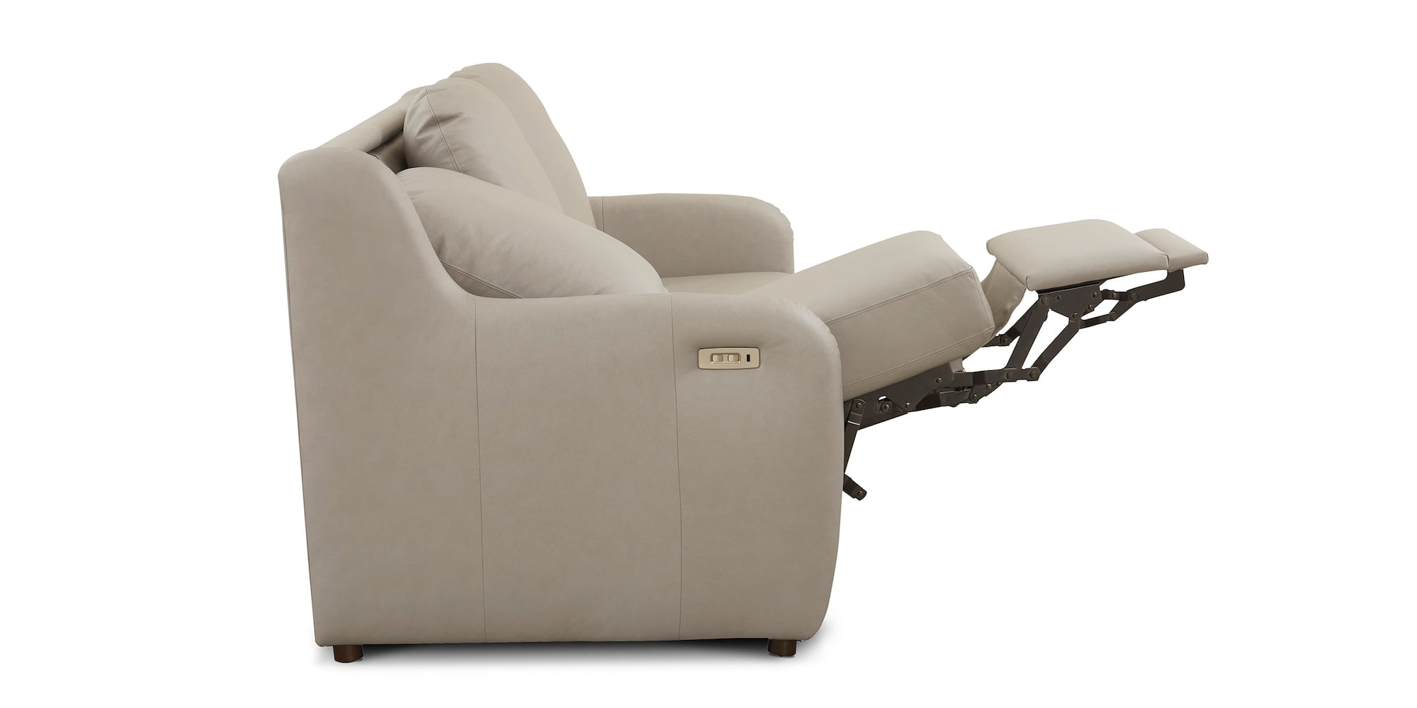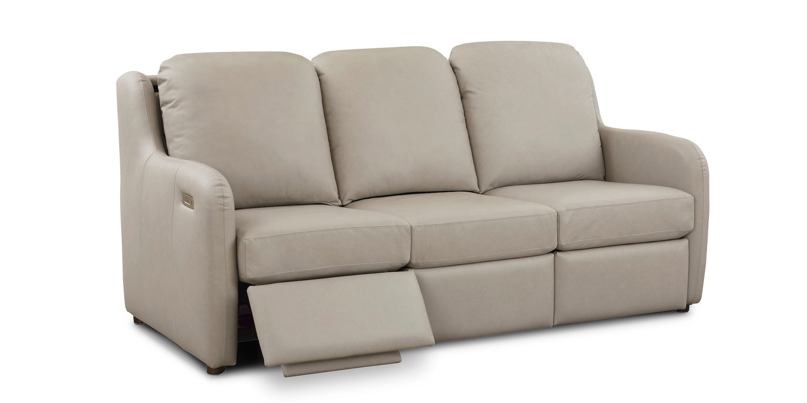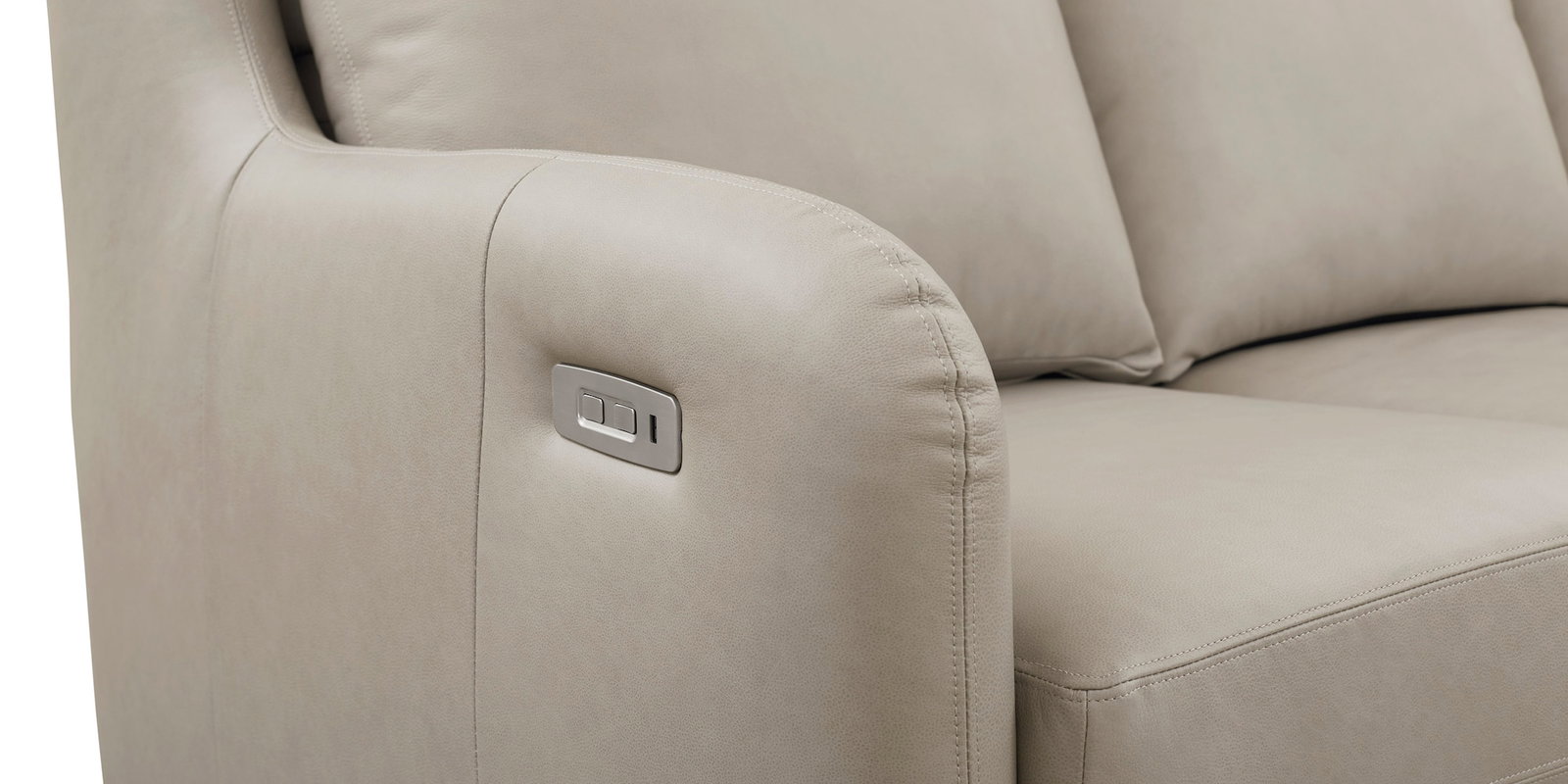 Product Description: Bassett Furniture 2906-72TML Wrenn Motion Leather Reclining Sofa - Leather: Tucson Dove Gray. The Wrenn Leather Reclining Sofa is the epitome of modern style in motion. Who knew that the fabulous design features – center-stitched slope arms and removable, knife-edge back pillows – were the unassuming cover for superhero relaxation? With the touch of a button, your Wrenn leather reclining sofa can kick all the way back to a zero-gravity reclining position, while frame-within-a-frame construction maintains the integrity of your well-styled space. These pieces look great from any angle, always showing off a solid back and low, round legs. Take your pick of three seat cushion comfort options – Lounge, Support, and Premier. Personalize your Wrenn even more with your choice of leather or fabric or add an optional battery pack in-store.