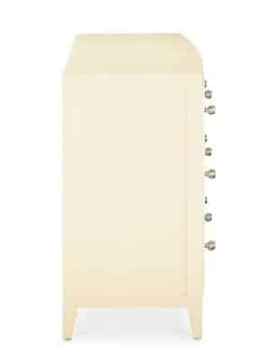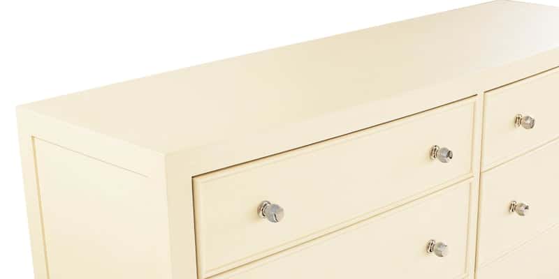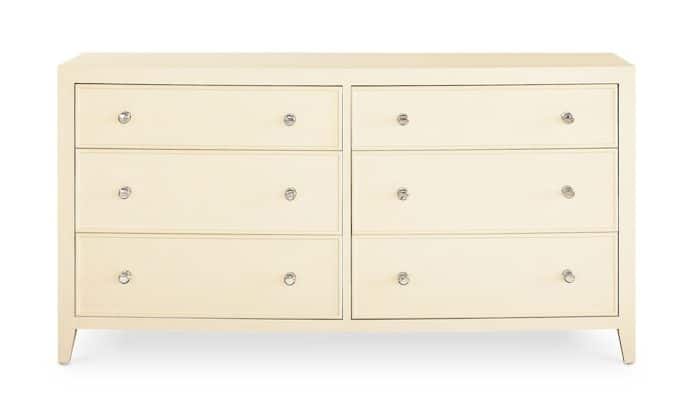 Product Description: Bassett Furniture 2944-0237 Newbury 6 Drawer Dresser - With beaded detailing and the gentle curve of its coved front, the Newbury 6 Drawer Dresser brings a smooth sophistication to your bedroom. Like the rest of the Newbury Collection, textured white oak is crafted into a dynamic combination of straight lines and curves. Accessed by their polished nickel beehive knobs, six symmetrical drawers provide substantial storage. The side panels are framed with a raised border and the dresser stands regally on slightly tapered legs. The Newbury dresser is destined to heighten the style in any bedroom from classic to modern.