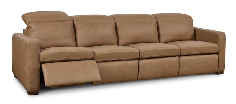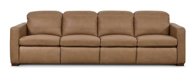 Product Description: Bassett Furniture 3664-SOFAGB Caswell Leather Power Reclining Modular Sofa - The modular design of the Caswell Collection delivers an expanded, 4-seat option – the Caswell Leather Power Reclining Modular Sofa. Perfect for movie night or game day in your large gathering space, the Caswell’s modern, streamlined design offers plush reclining comfort in a uniquely refined silhouette. The headrests that all elevate for reclining will fold to a flat position when not in use, allowing for a wide-open view across your room. Yet, when the wall-hugging, reclining mechanism is engaged, your relaxation can go all the way to Zero Gravity. Leather, in two color options, lines the full interior of the sofa, while the sofa can be viewed from all sides thanks to the vinyl match exterior back. If you prefer cordless power, visit a Bassett store for the battery pack option.
