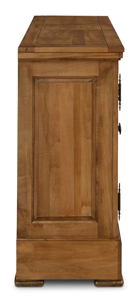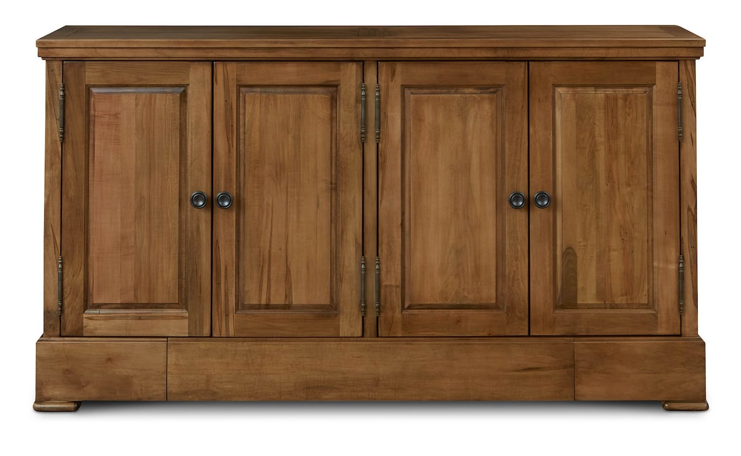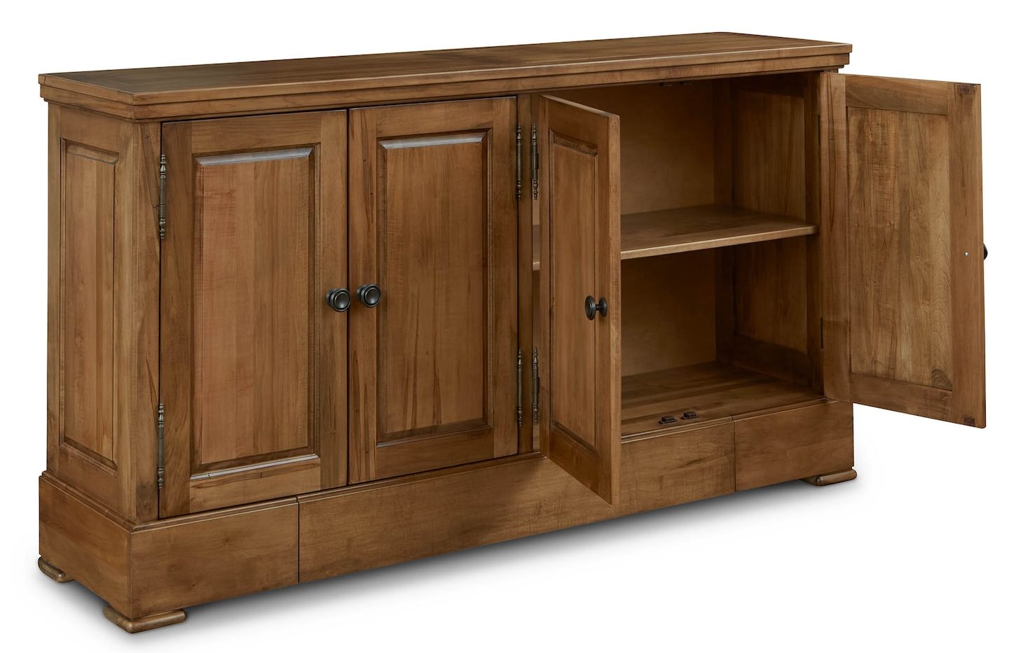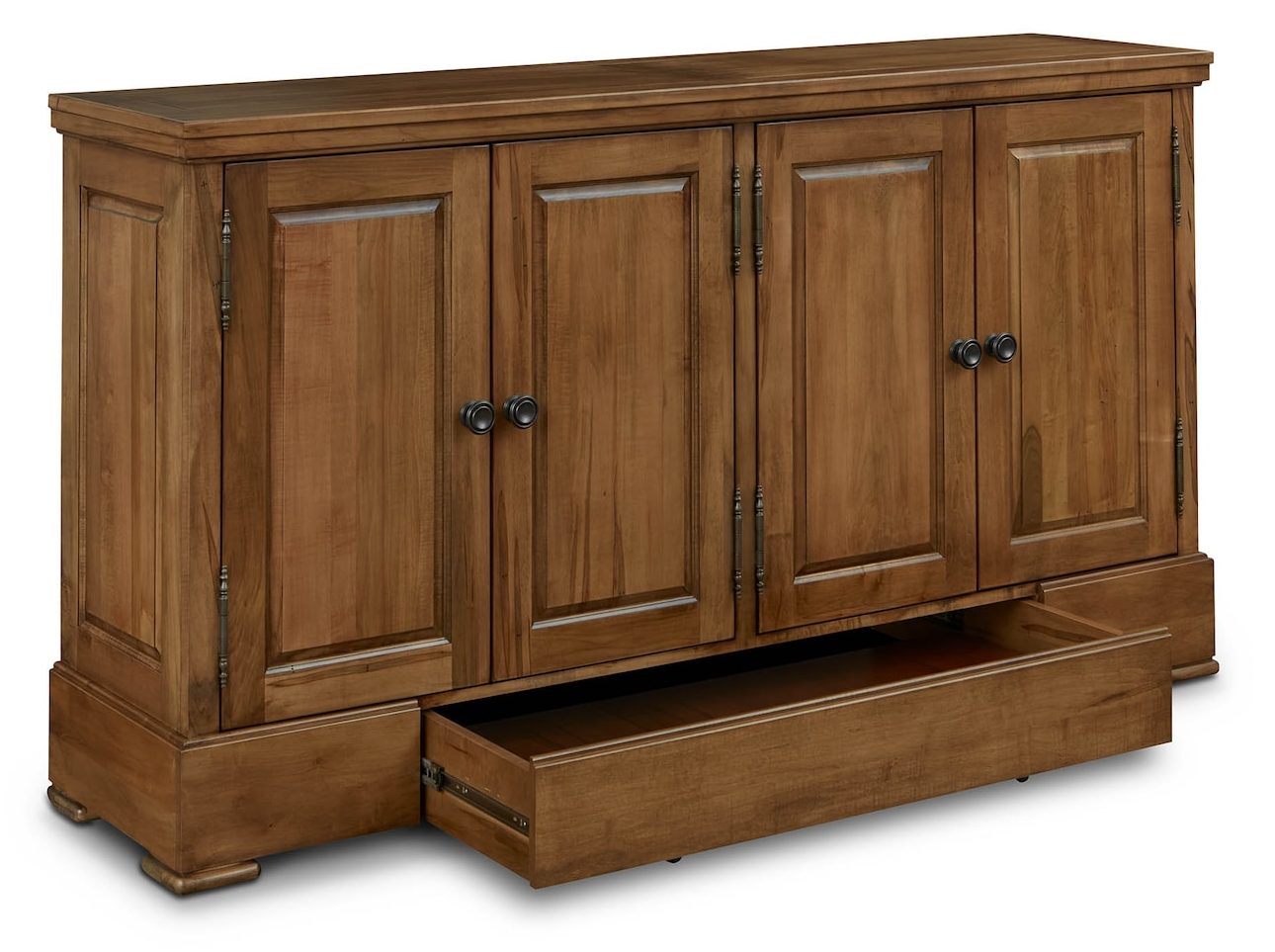 Product Description: Bassett Furniture 4021-0309LS Hawkins Huntboard with Table Leaf Storage - Adding a specially designed drawer to store your table extensions has upped the custom quotient on our artisan-crafted Hawkins Huntboard with Table Leaf Storage. Handmade to your order from solid red-leaf maple, you can use the Hawkins to serve and store everything from serving ware to linens to those table-extending leaves that ensure every guest is graciously accommodated. In addition to the leaf drawer engineered into the base, you have 4 solid wood doors that open to adjustable shelving storage by way of antiqued pewter hardware. The Appalachian maple can be finished to your preference, including a match to the BenchMade Harvest and Crossbuck Dining Tables with Leaf Extensions.