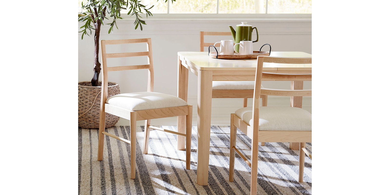 The BenchMade Origins Collection builds on Bassett’s handcrafted BenchMade line, offering thoughtfully sized dining tables, chairs, and a sideboard designed for practical, everyday use. Ideal for smaller kitchens, lofts, or casual dining spaces, many tables come with leaf extensions to provide flexible seating. Made from solid Silver maple and maple veneers, the pieces are available in a variety of finishes that showcase the wood’s natural beauty, combining smart design with a relaxed, versatile style.