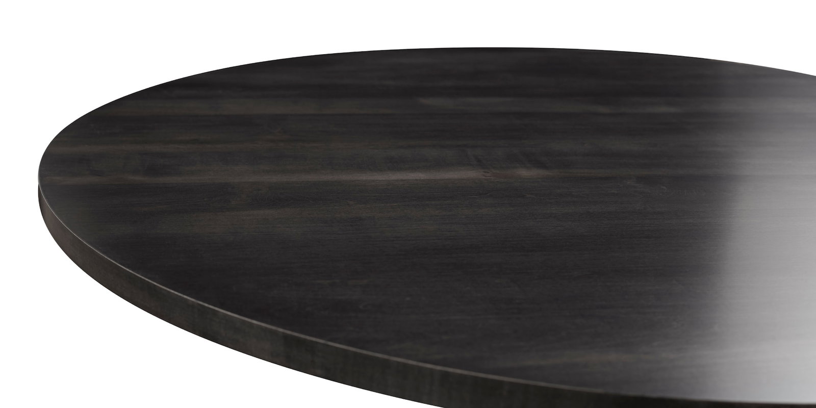 Product Description: Bassett Furniture 4025-K4444C Nichols Round Dining Table - Finish: Origins Carbon. The sleek look and space-savvy design of the Origins Nichols Round Dining Table uses a cast resin & concrete pedestal with faux wood grain finish to deliver maximum dining space no matter your room size. This Nichols Table –with its disc-like, Silver Maple veneer top – is elegant enough for a candlelit dinner with friends, yet understated enough to bring Euro-bistro élan to your daily coffee or tea times. Tweak the style flavor with your choice of finish – Carbon, Sable, and Natural – and bring well-seasoned design to your refreshed dining space. The Nichols Table is also offered in a larger size with leaf options.