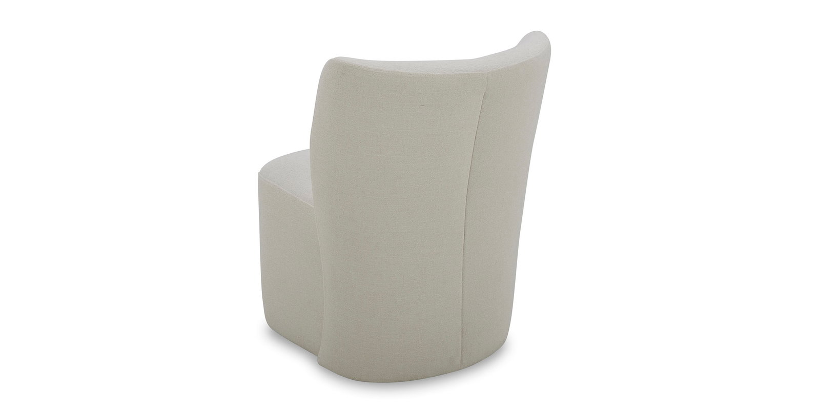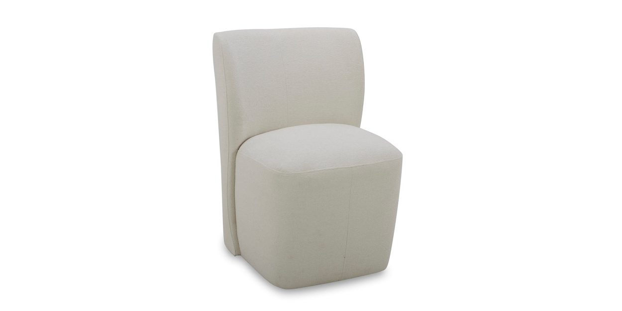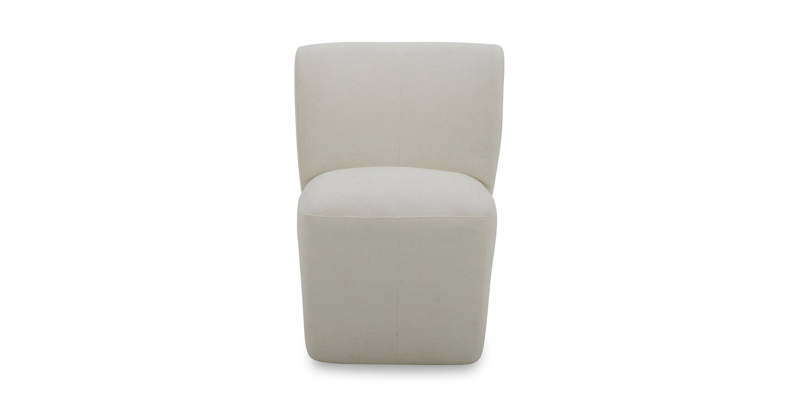 Product Description: Bassett Furniture 4200-B684 Reed Upholstered Dining Chair with Casters - Fabric: Crypton Wayfarer Cloud. Offering a warm yet modern welcome, the Reed upholstered dining chair shows off a simple silhouette to coordinate with a variety of dining styles. The fully upholstered chair combines subtle curves with a tight back, all wrapped up with an easy-care fabric to bring chic comfort to your dining space. Choose from Cloud or Pearl performance fabric. Recessed casters provide easy movement.