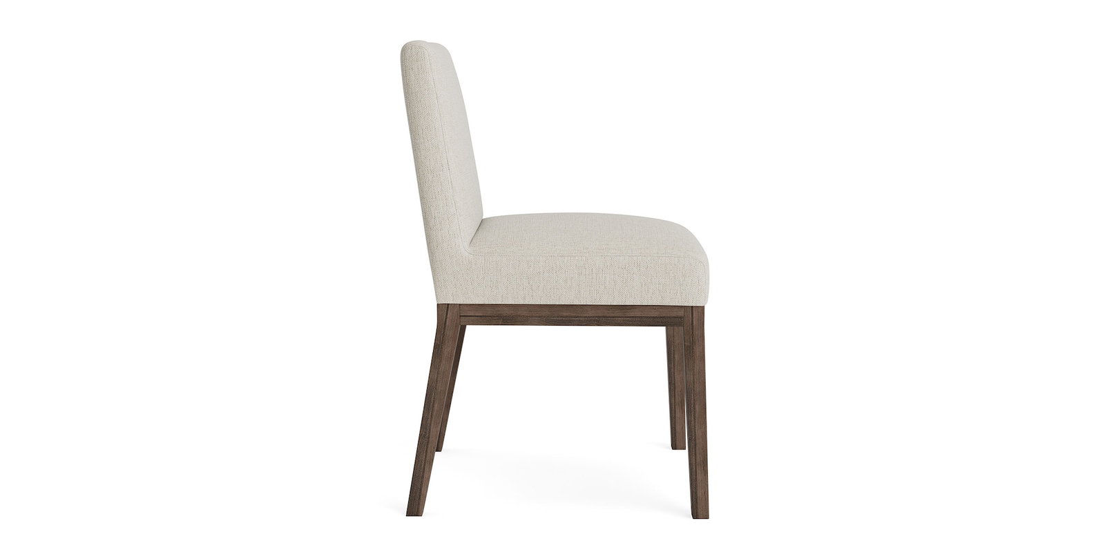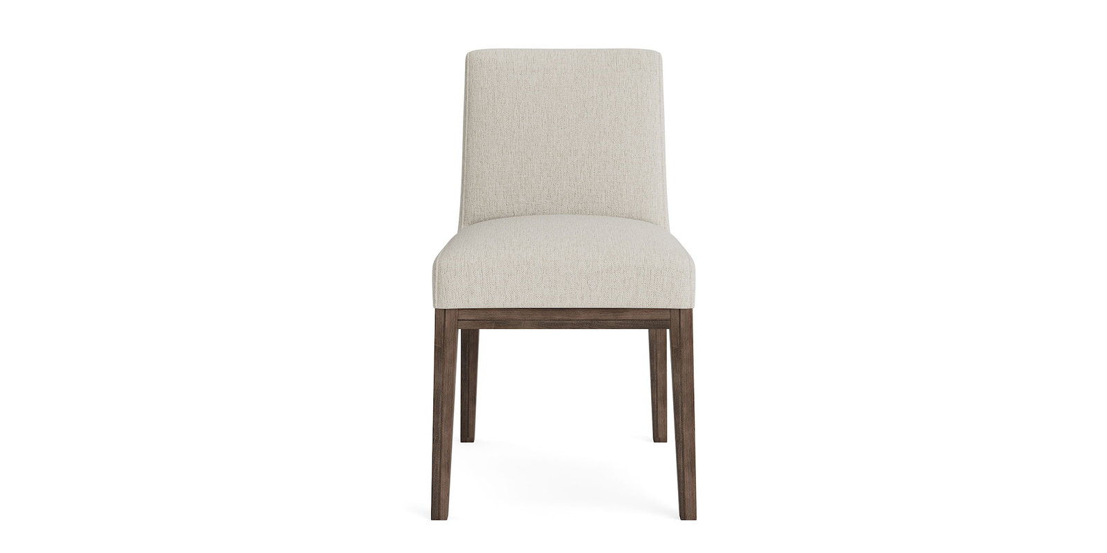 Product Description: Bassett Furniture 4226-2451 Holt Upholstered Dining Side Chair - Fabric: Basket Weave Bone. Wood Finish: Greylan Maple. Enjoy daily dining just got an elegant update from the BenchMade Holt dining chair. A fully upholstered back and seat invite everyone to linger just a little longer at the table while the clean, modern silhouette adds curvaceous subtlety and elegant tailoring to your aesthetic. Choose from a range of lightly distressed finishes. The fabric options range from performance linens to velvets in a range of almost-edibly beautiful colors.