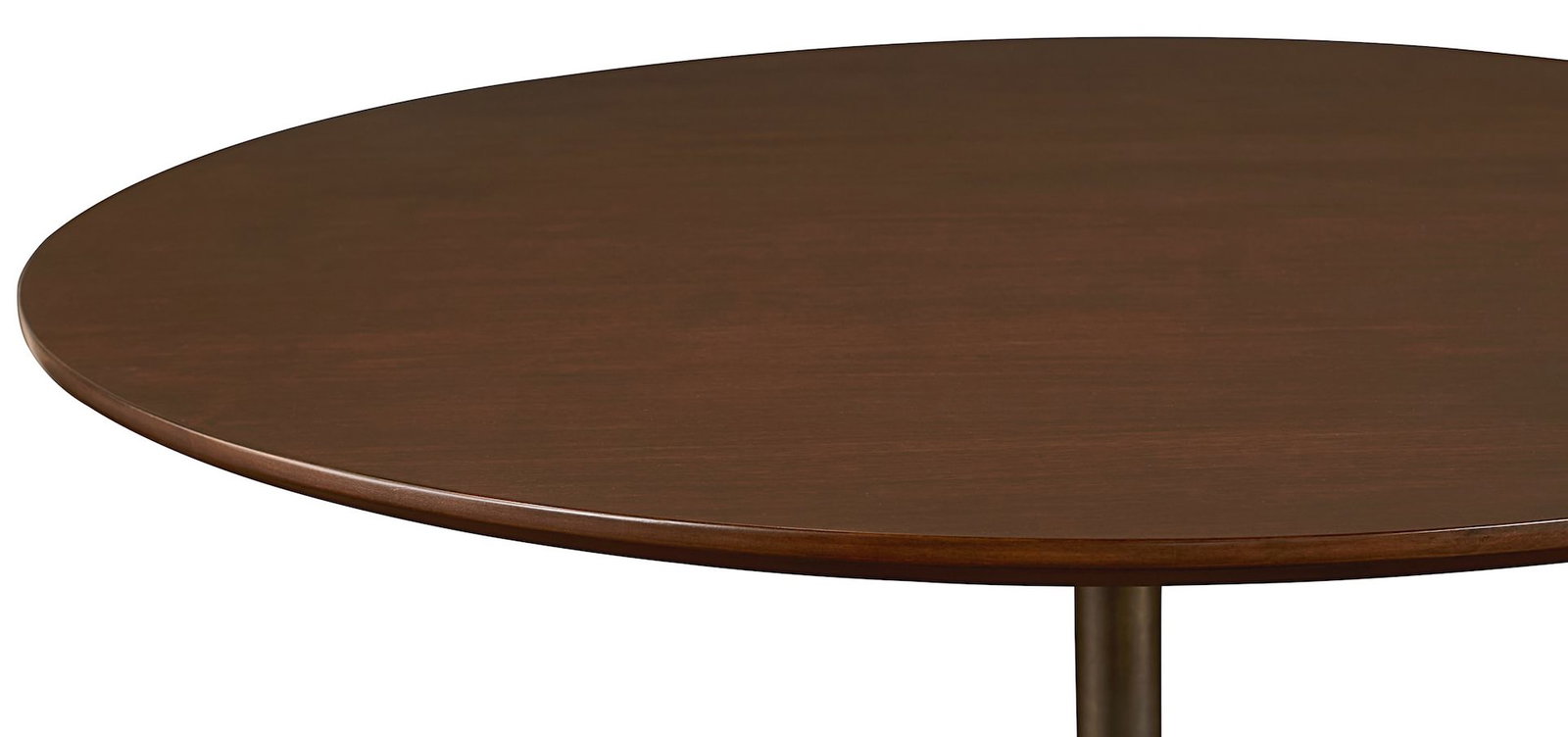 Product Description: Bassett Furniture 4535-K4848 Copenhagen Round Dining Table - Find your dining delight at the espresso-hued walnut tabletop perched on the tulip base of our newly iconic Copenhagen Round Dining Table. Featuring a Danish Modern softened-edge detail, the table is available in either a 48” or 60“ diameter to fit itself perfectly into your dining space. Enjoy the spacious legroom offered by the bronze-finished pedestal base, adding chairs (like the Copenhagen Dining Chair) to personalize your room and seating.