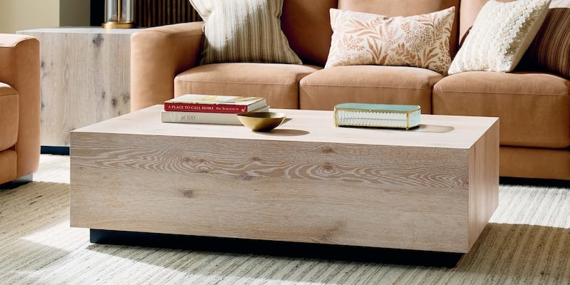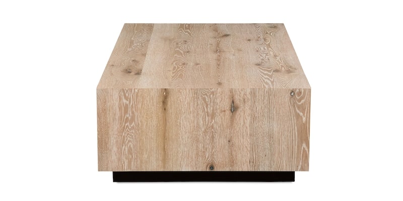 Product Description: Bassett Furniture 6125-0613W Cascade Rectangle Cocktail Table - Speaking the language of modern rustic design, our Cascade Rectangle Cocktail Table is ready to slide right into your contemporary décor. In true contrapuntal harmony, the rustic white oak veneers with enhanced knots adjoin each other in tight, clean lines. Bassett artisans carefully align the natural grain on the cocktail table to create a sophisticated waterfall effect. The Appalachian oak veneer, hand-applied over a solid wood plinth base, can be finished in your choice of a nearly natural Boardwalk or an earthy Barley brown. You can also choose to order your custom cocktail table with casters.