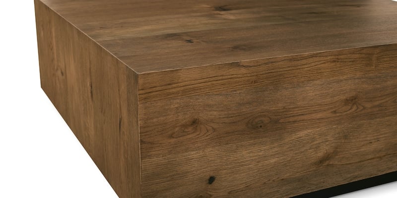 Product Description: Bassett Furniture 6125-0615B Cascade Square Cocktail Table - Rustic wood brings a depth of character to the seemingly seamless waterfall-style construction of the modern Cascade Square Cocktail Table. Built one at a time in Virginia by Bassett artisans, Appalachian white oak veneers are hand-applied over a solid plinth base. Featuring enhanced knots, the oak veneer can be finished in your choice of a nearly natural Boardwalk or an earthy Barley brown. You can also choose to order your custom cocktail table with casters for easy accommodation of reclining sofas or snacking guests.