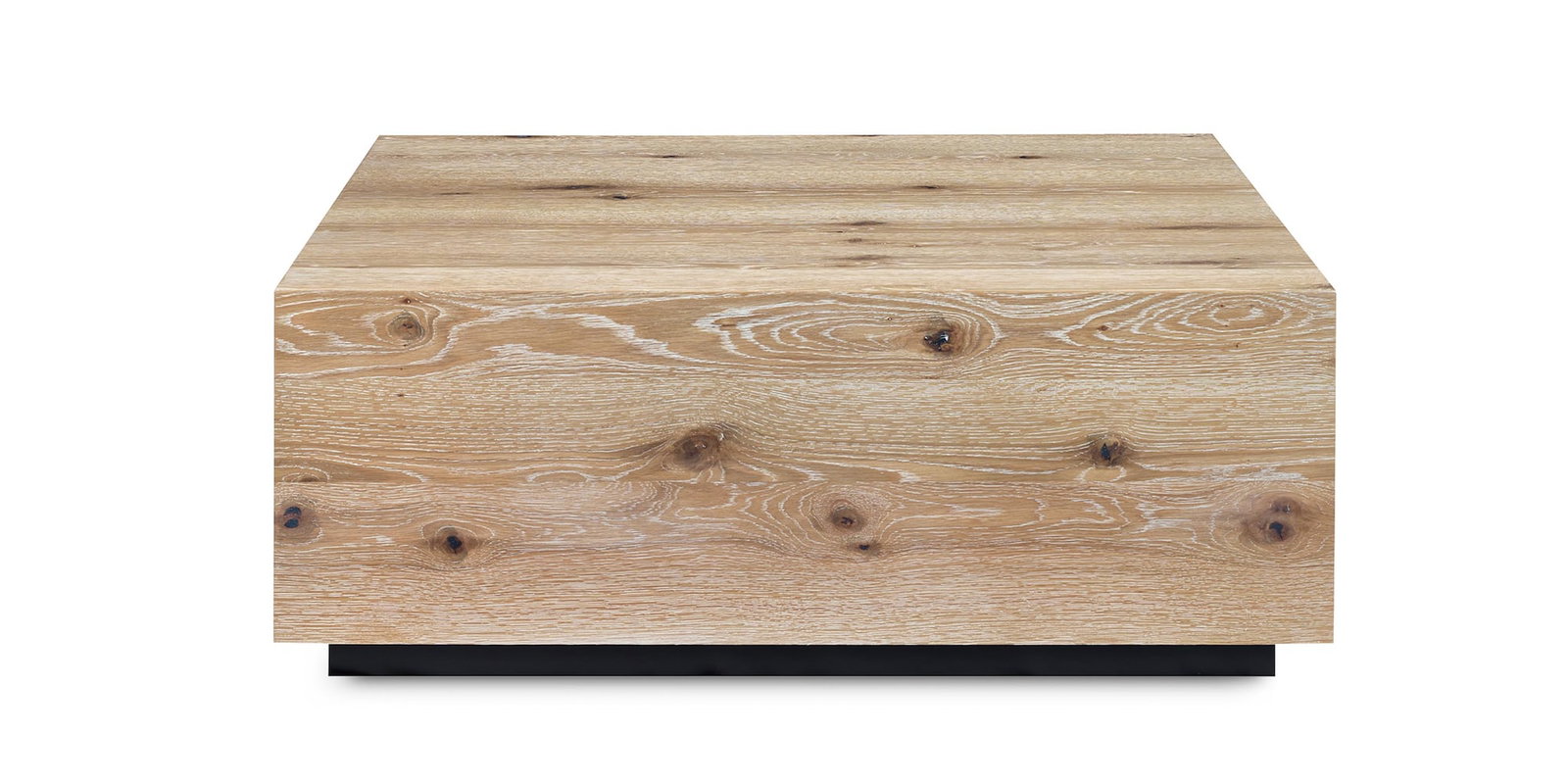 Product Description: Bassett Furniture 6125-0615W Cascade Square Cocktail Table - Rustic wood brings a depth of character to the seemingly seamless waterfall-style construction of the modern Cascade Square Cocktail Table. Built one at a time in Virginia by Bassett artisans, Appalachian white oak veneers are hand-applied over a solid plinth base. Featuring enhanced knots, the oak veneer can be finished in your choice of a nearly natural Boardwalk or an earthy Barley brown. You can also choose to order your custom cocktail table with casters for easy accommodation of reclining sofas or snacking guests.