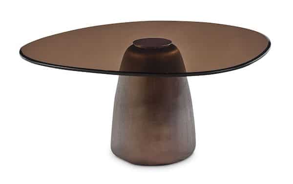 Product Description: Bassett Furniture 6E26-K605 Pantheon Large Glass Top Coffee Table - Let your style sprout in a special way with our Pantheon Large Glass Top Coffee Table. The largest table in our Pantheon series is sized so it can stand on its own or center a grouping of the Pantheon nesting tables. The base is finished with a metallic pewter bronze, adding subtle shimmer and shine to your setting. The organic-shaped amber glass top offers a translucent luminosity that adds character without visual weight. Use the table’s distinctive versatility to easily adapt to the moods and needs of your living space.
