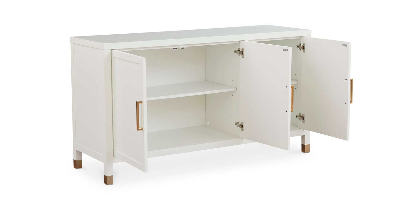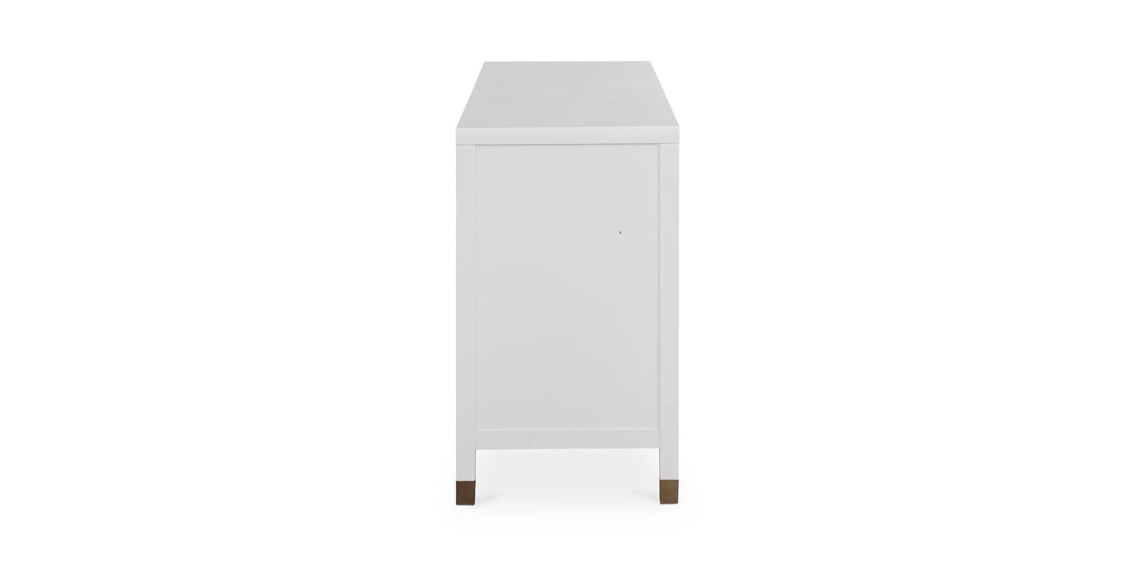 Product Description: Bassett Furniture 9977-0308 Tidewater Credenza - The magic is in the details, and the classically detailed Tidewater Sideboard casts a spell of casual charm and brilliance. Raised framing on the drawer fronts and sides of the Tidewater reflects Old World craftsmanship while its timeless style transitions across all design genres. The smooth Hampton White finish, evocative of the glassy surface of coastal waters on a clear day, will brighten your dining space, hallway, or even living room. Satin brass leg ferrules and bar pulls add a sun-on-the-water glimmer to a solid storage option. Stow your treasures or display them – there’s ample space for both.