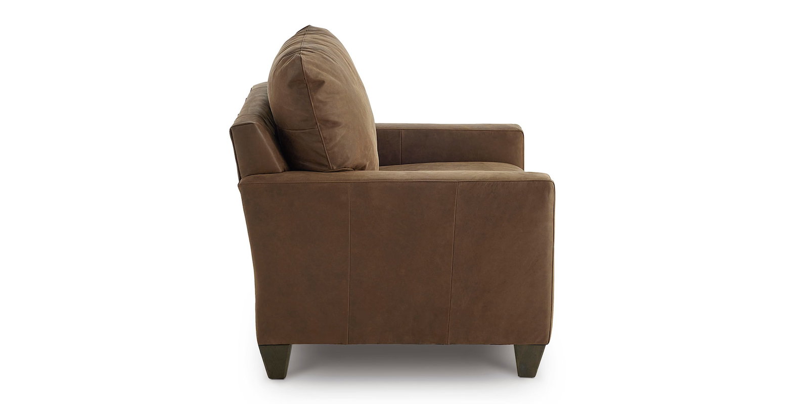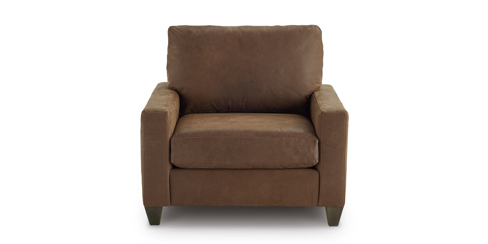 Product Description: Bassett Furniture C654-18SFL True Custom Leather Track Arm Chair and a Half - With our Premier Custom Leather Large Track Arm Chair and a Half, you can be as generous with yourself as you are with others. Expand your luxury lounging in this chair-and-a-half to include a friend (furry or otherwise) or simply claim the whole, deep-seated space for yourself. Fling your arms as wide as the track arms that embrace you. Dress it in your favorite leather, pick the cushion comfort you prefer, and claim this throne for your own.