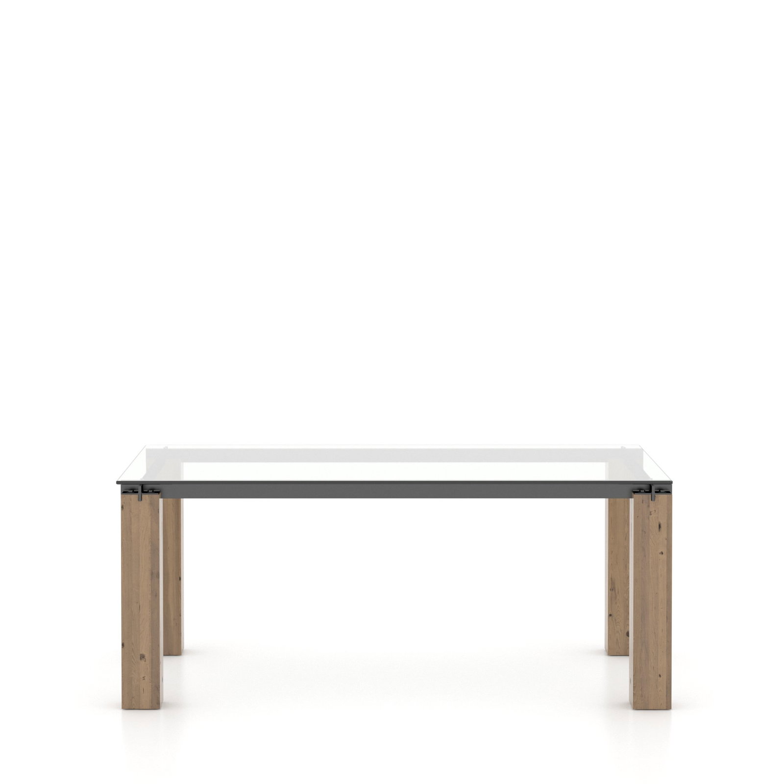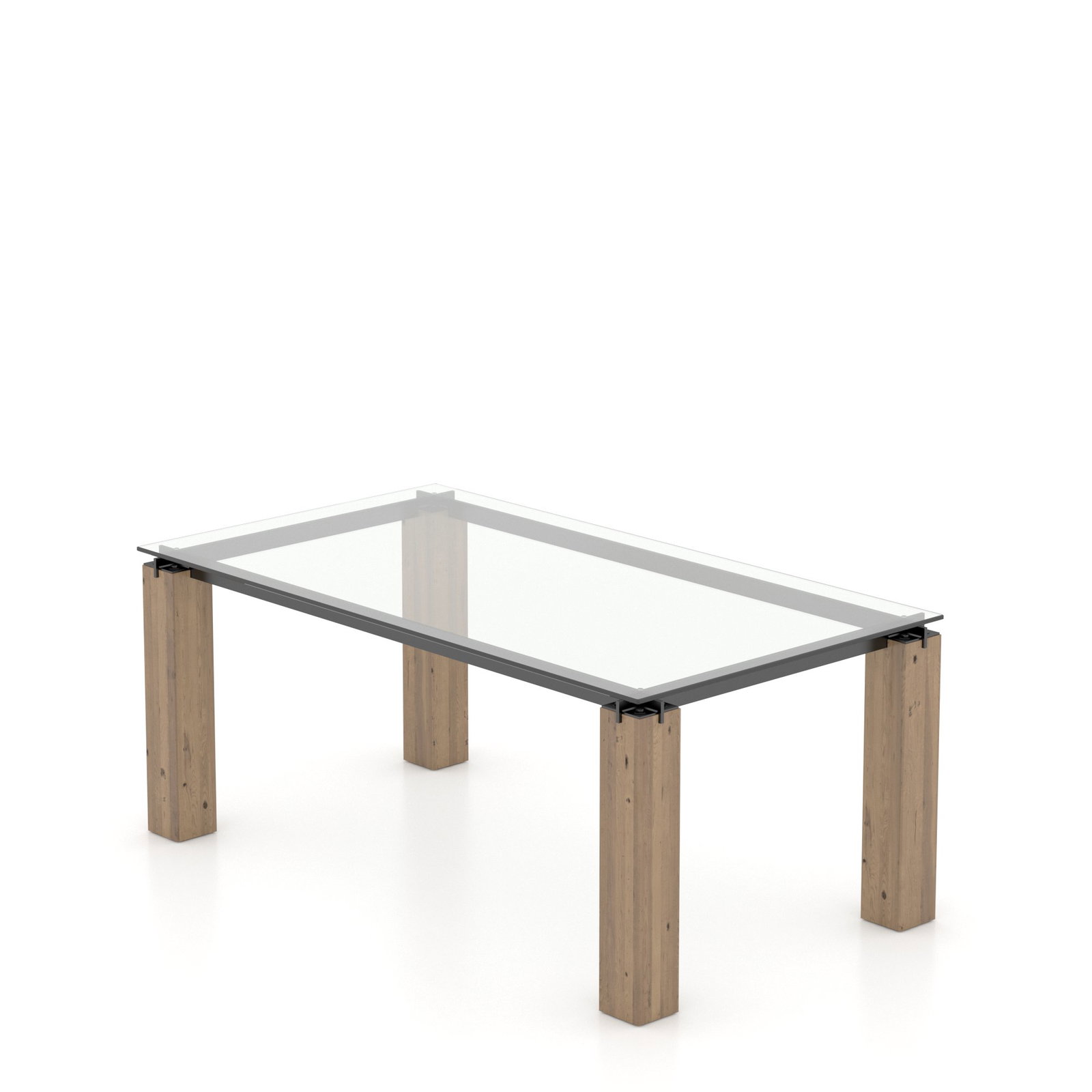 Product Description: Canadel Casual Dining GRE04072CL25RLENF Rectangular Glass Table - This remarkable table from the Loft collection combines a beautiful glass top with large wooden legs in a rustic finish, a result that is both minimalist and striking.
