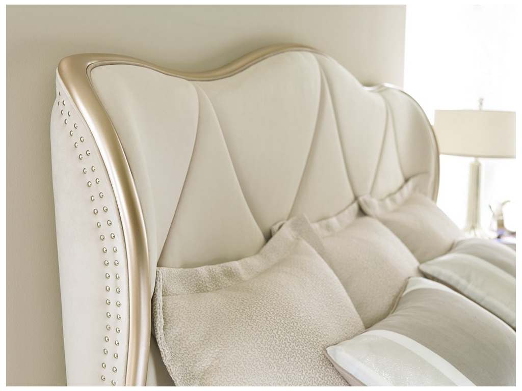 Product Description: Caracole C013-016-142 Adela California King Bed - The majesty of The Adela California King Sleigh Bed cannot be overlooked. This bed is fully upholstered in creamy velvet that sweeps from the high, curvaceous headboard, down along the rails, and around the low footboard. The collection's lyrical astroid motif is on full display in the headboard's light tufting. Beautiful double-nail details trim the bed's edges. The bed's frame offers a low profile as a result of slim, contemporary feet, making it a highly comfortable piece for generously proportioned bedrooms.