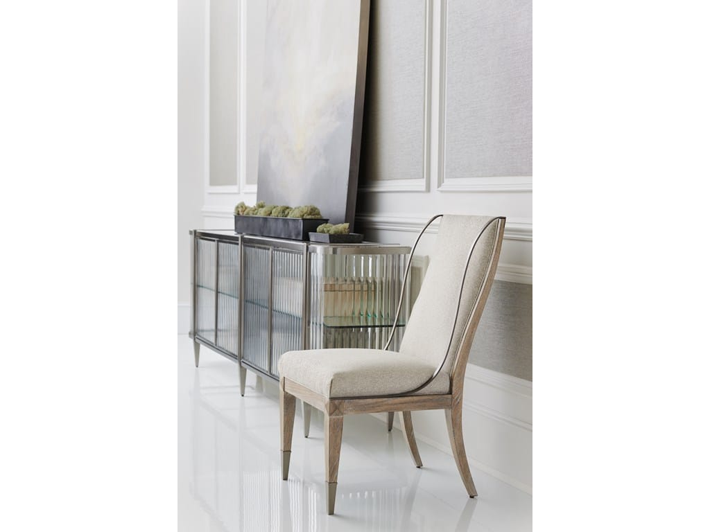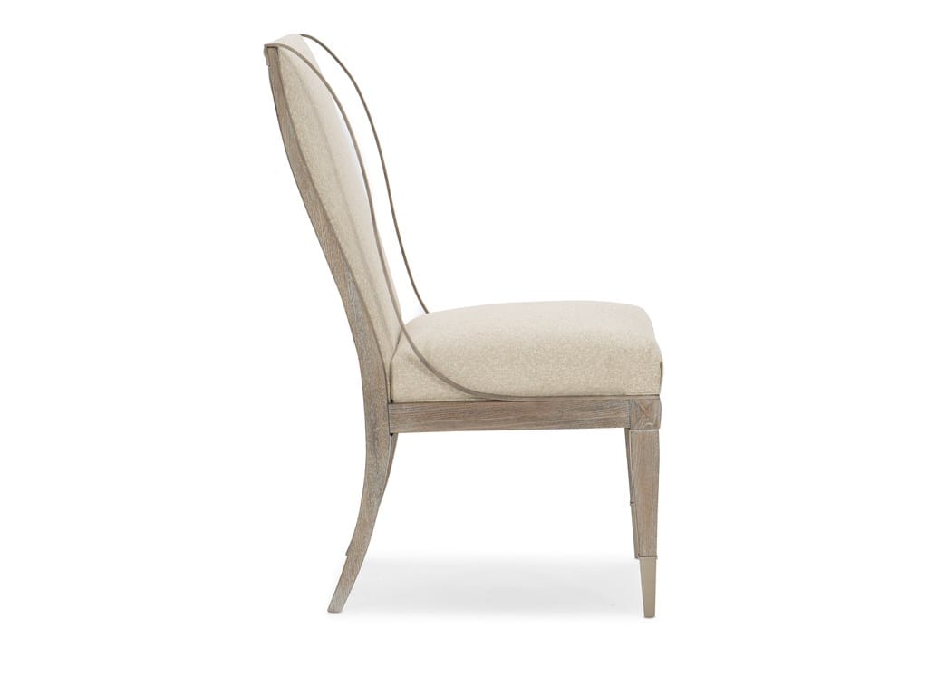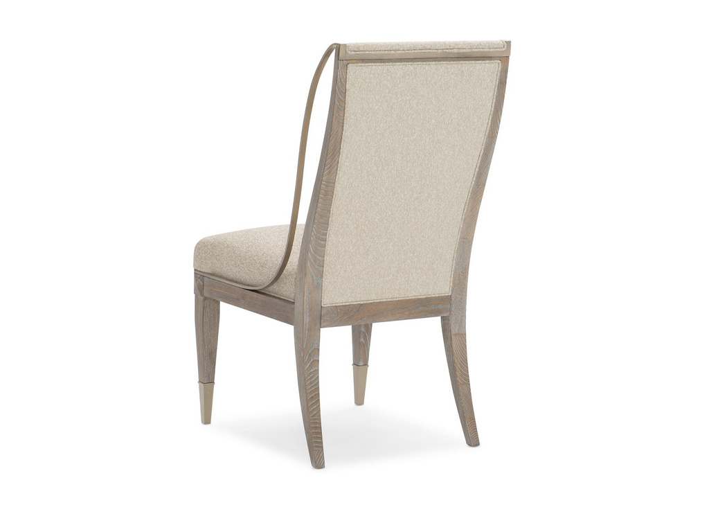 Product Description: Caracole CLA-019-283 Caracole Classic Open Arms Side Chair - A gorgeous addition to any table, the Open Arms Side Chair offers the perfect mix of classic and updated. Its timeless silhouette is complemented by a curving metal ribbon element in a glimmering Sundance Gold that distinguishes the side edge of each chairback. The beautiful Ash Driftwood finish on this dining chair feels fashionable and relevant. It pairs beautifully with a variety of tables and décor styles, as does the chair's luxurious fabric cover. A study in sophistication, this side chair will never go unnoticed