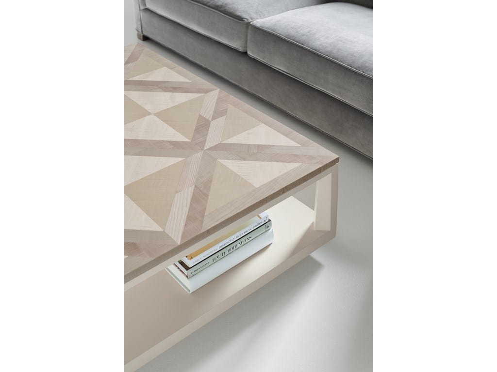 Product Description: Caracole CLA-019-409 Caracole Classic Work Of Art Cocktail Table - What's more ideal than having a cocktail table that's also a Work of Art? This grand square table is a favorite of all who see it. Its extraordinary parquet top is crafted to perfection and so gorgeous you'll hesitate to cover it. Intricate inlays of wood create a stunning geometric pattern of contrasting wood tones centered in a balanced frame and brought to life with an easygoing Ash Driftwood finish. With open storage below, it offers multi-functional styling and a place for a favorite throw blanket, laptop or magazines.