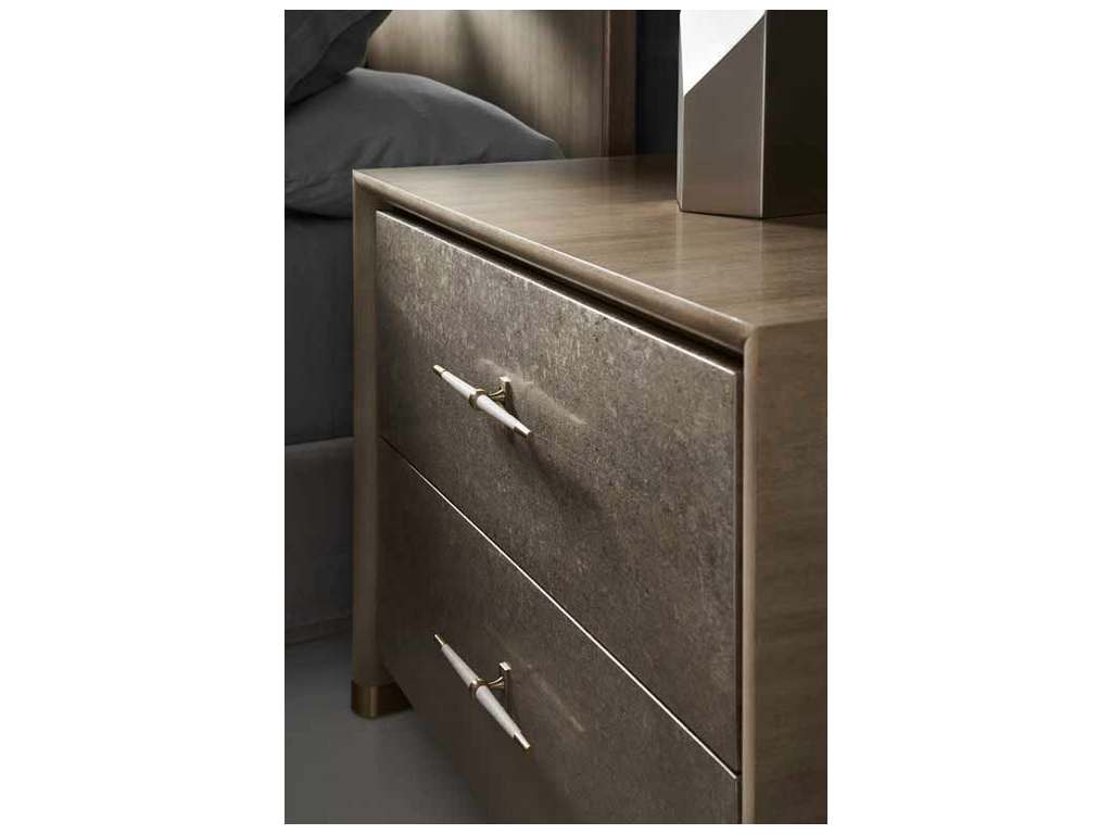 Product Description: Caracole CLA-022-066 Caracole Classic Hang Up Large Nightstand - A captivating bedside companion, the Hang Up large nightstand melds the natural beauty of wood with the allure of metal. Features soft-close drawers finished in a broken leaf metallic that recalls the shimmer of a frost-covered, candle lit window. Brushed Gold accents and tapered drawer pulls wrapped in hand-stitched, faux leather add warmth and a luxe finishing touch. Style in pairs, or with our Hang Up small nightstand for added interest and dimension.