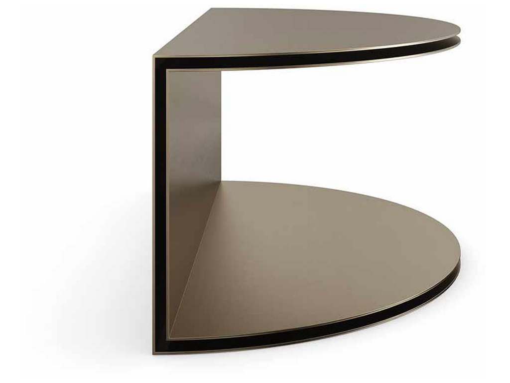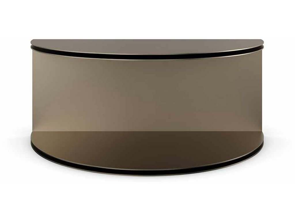 Product Description: Caracole CLA-022-404 All Together Cocktail Table - The elegance of geometry was inspiration for this dually functional table, composed of two demilune shapes that come together and form a perfect circle. Introduces an industrial yet luxurious aesthetic in a Champagne Gold finish, designed with a double wall of bent metal to create a cantilevered upper and lower shelf. Tuck beneath our Bridge the Gap table for a unique cocktail table that melds sleek metallic curves with a tactile form in a soft rib cloth fabric with a blush gold tone. Or, pull apart to style as individual end tables.