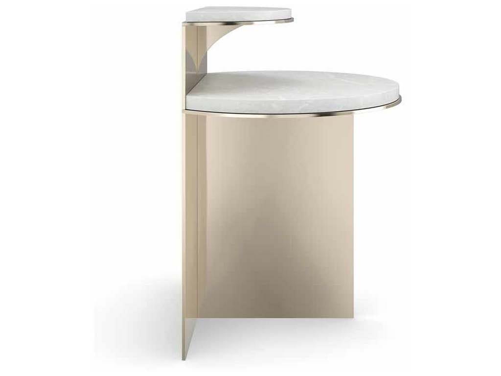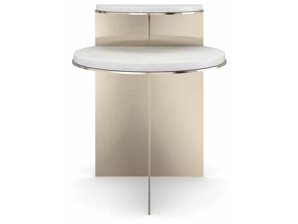 Product Description: Caracole CLA-022-423 Caracole Classic Touche Light End Table - Simple yet elegant with an emphasis on function, this curved end table adds depth and reflection to seating areas. Features two tiers of White Rhino stone atop an angular metal base finished in a Whisper of Gold. A standout on its own, even more memorable in pairs.